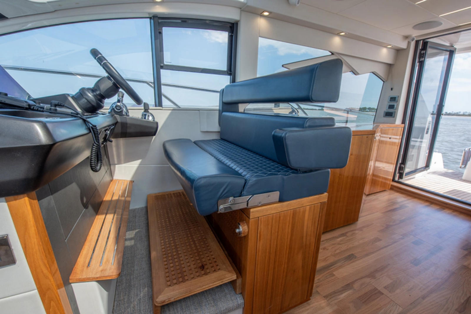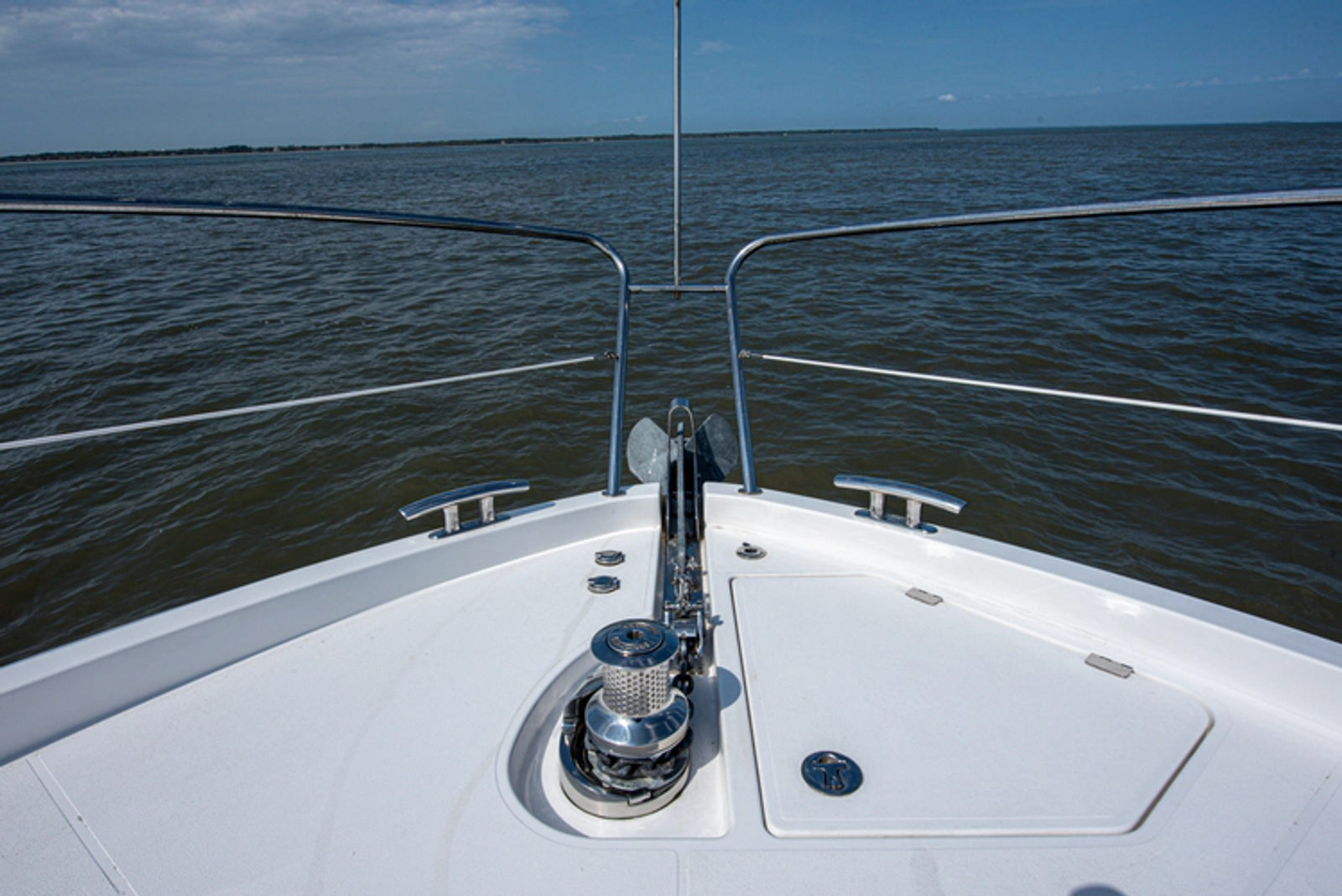 Powered by twin Volvo Penta D8 V-drive engines with joystick control, the Predator 50 provides strong performance, smooth handling, and confident maneuverability. The addition of bow and stern thrusters, along with Volvo Penta’s electronic steering and control systems, makes docking straightforward and predictable for an owner-operator.