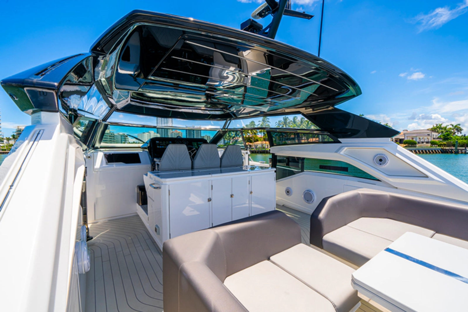 - Color and Exterior: Sleek gray hull with Isinglass front enclosure and full cover package