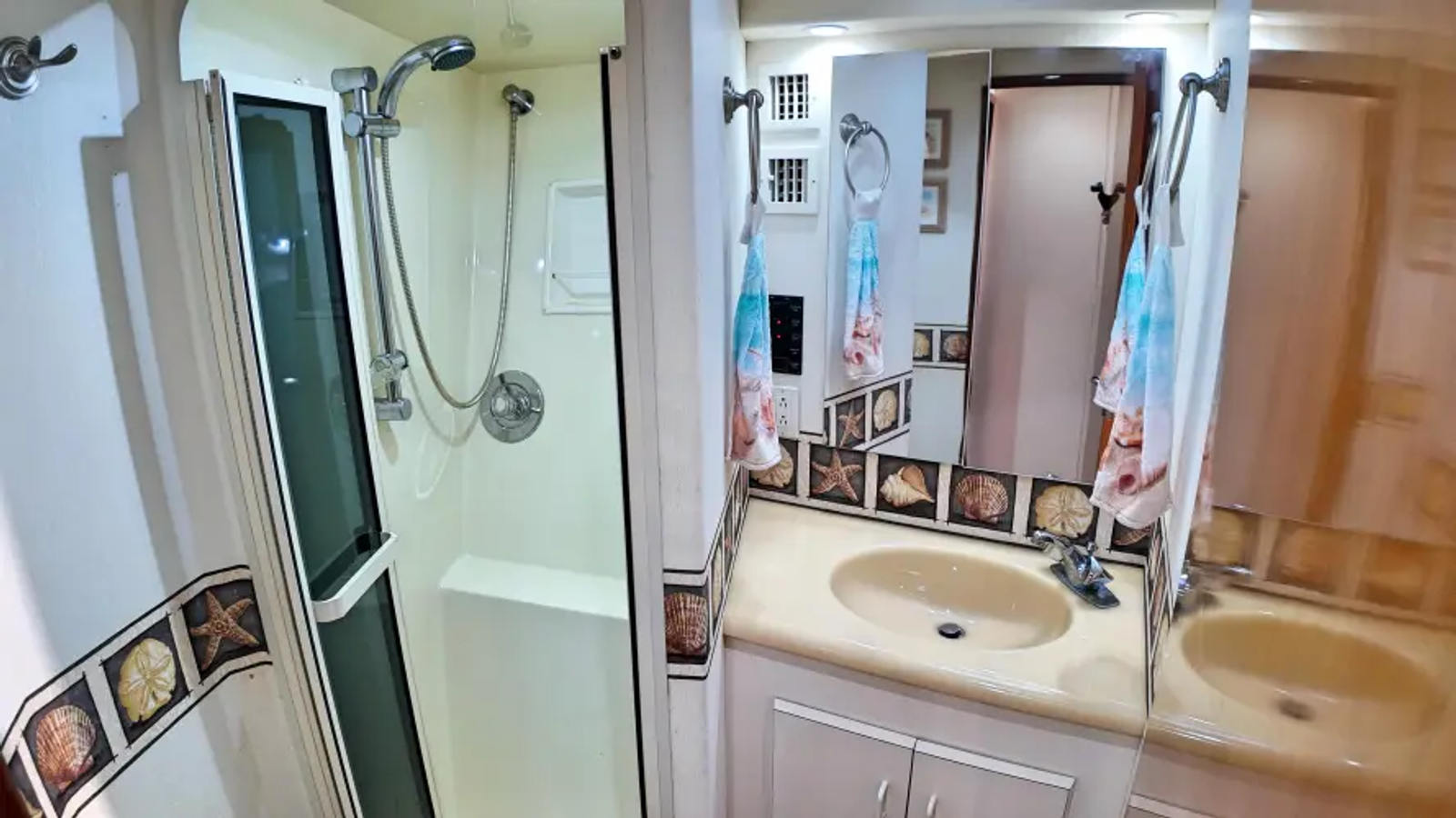 - Additional overhead pantry storage above galley sink