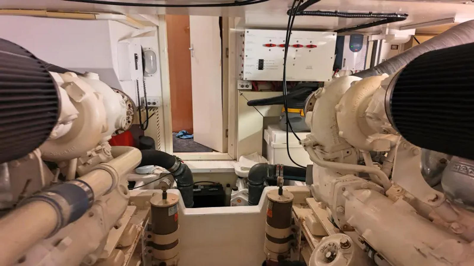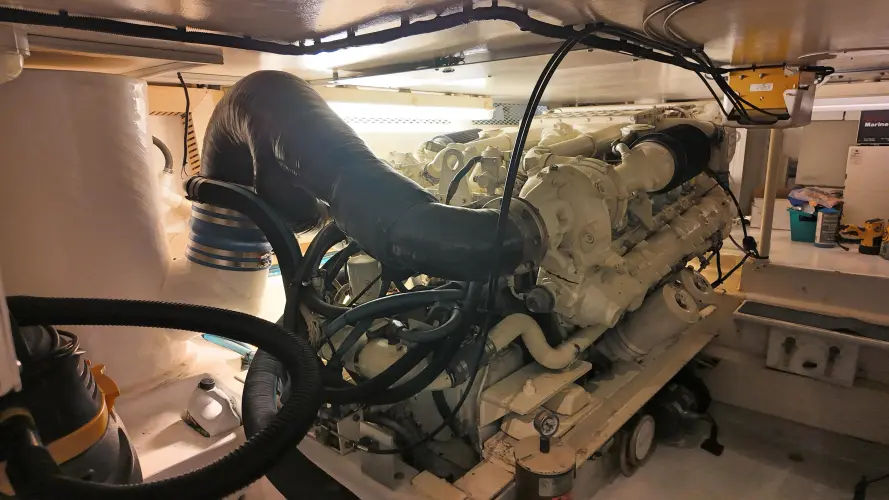 Very well – maintained MAN D2840LE403s with under 2,000 hours. She is turn key for your next trip whenever you travel. There is a ton of space and head room for the operator to check on their systems and maintenance.
