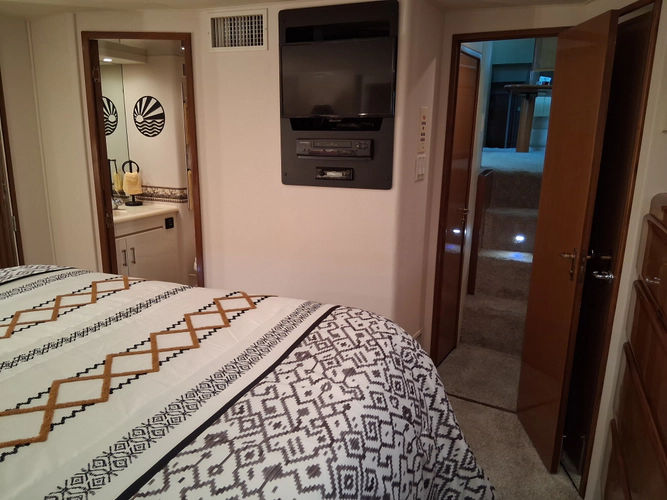 - Centerline queen size bed with private ensuite. Spacious VIP that has many storage options for your guest.