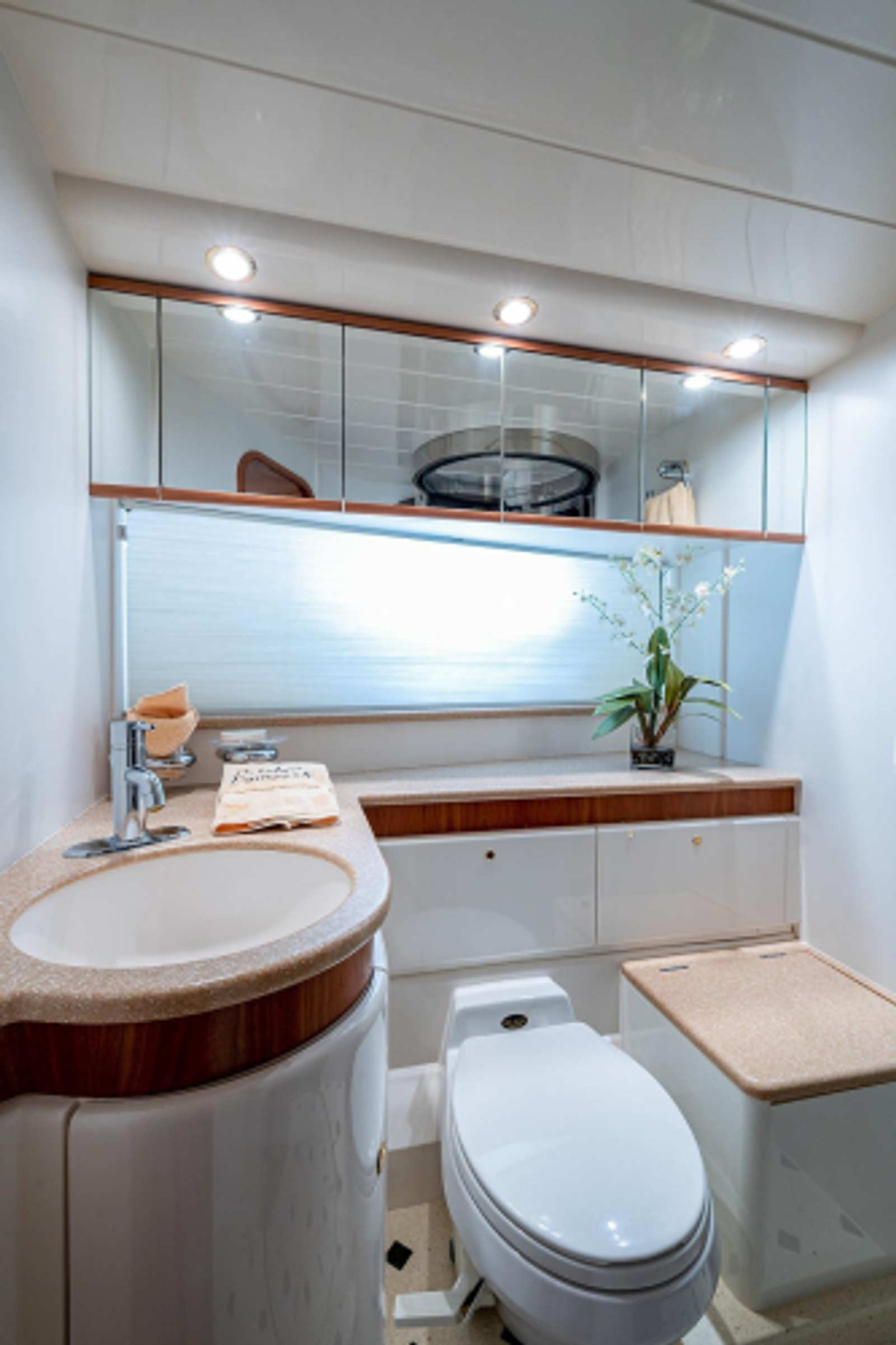 - Overhead cabinetry to port and starboard
