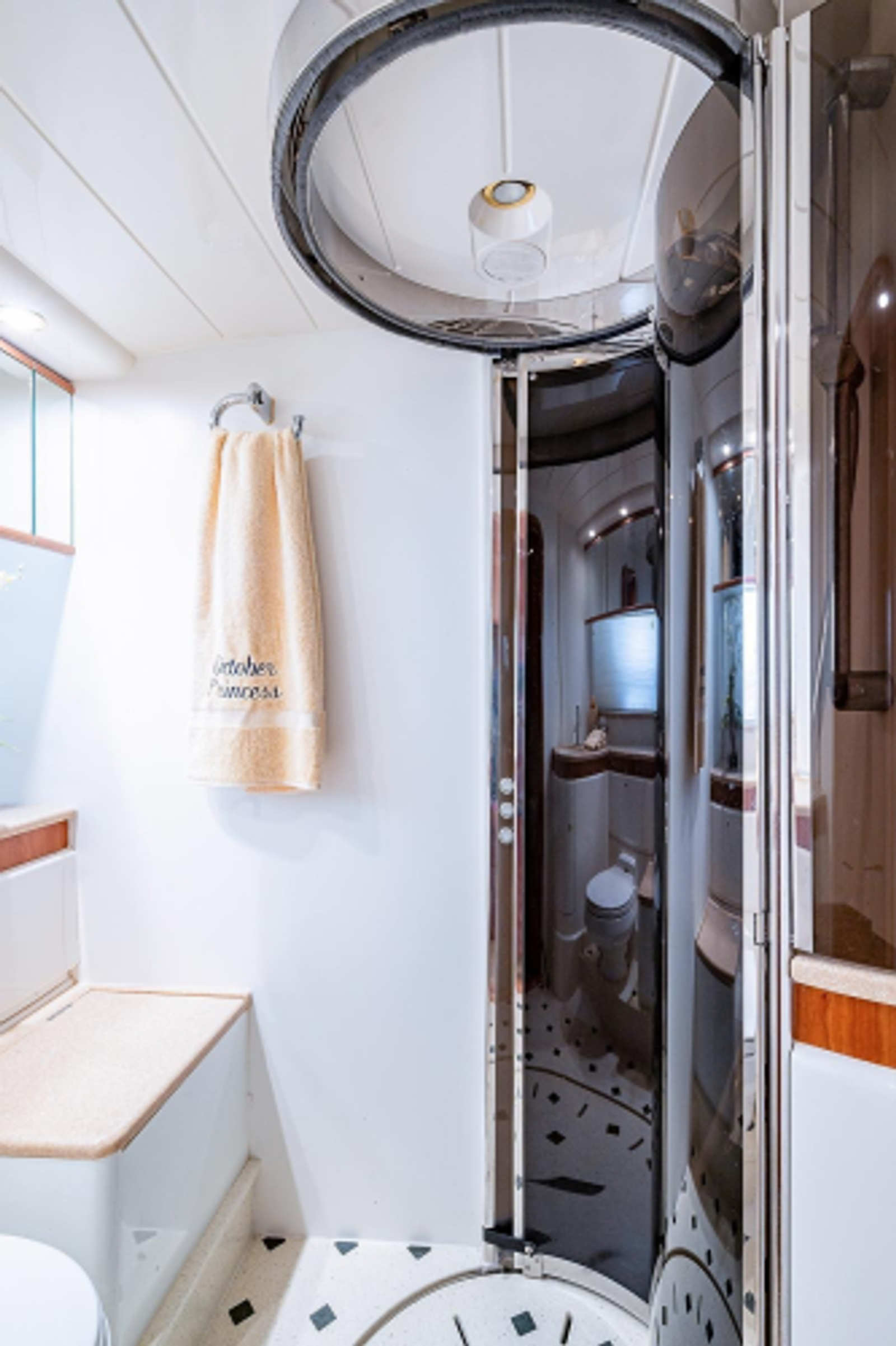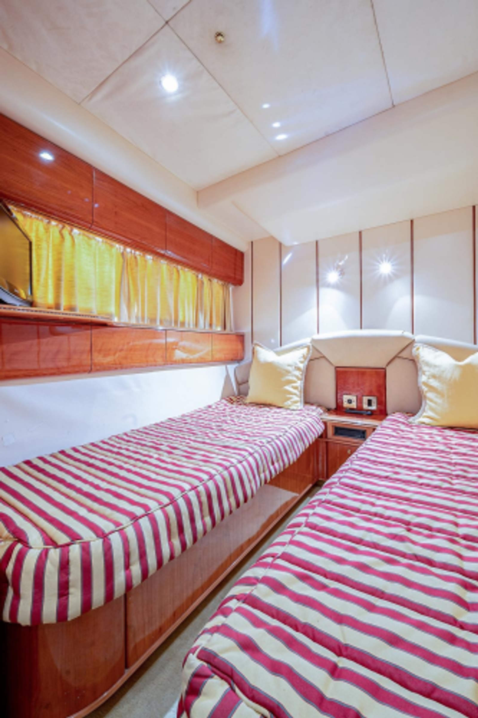- Porthole with window treatments port and starboard