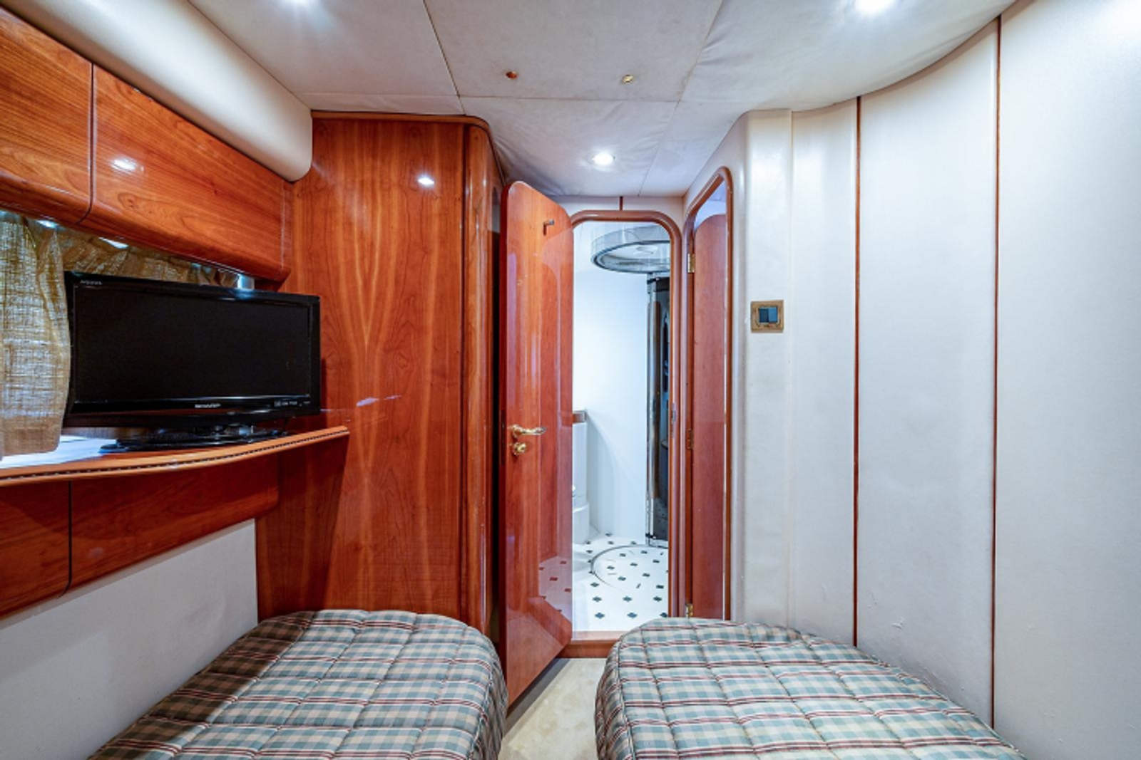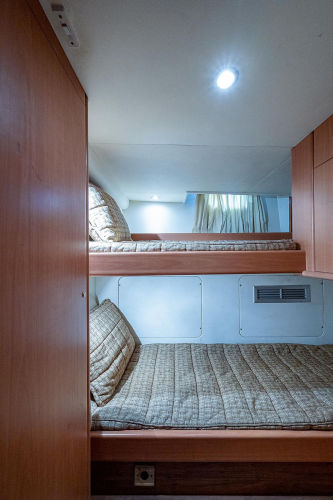 - Upper and lower single berth to starboard and single upper berth to port