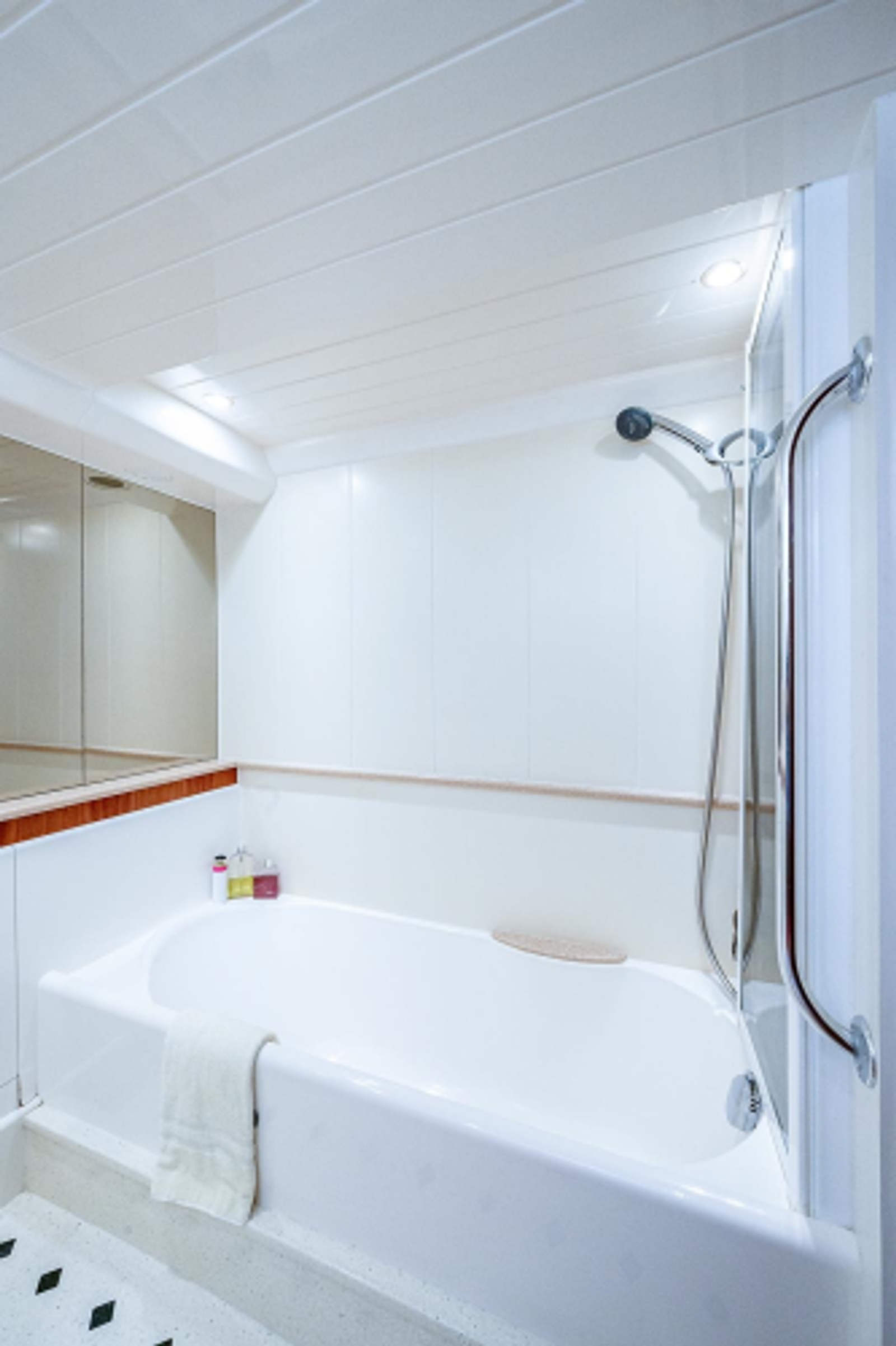 - Molded overhead with (4) recessed lights and exhaust fan