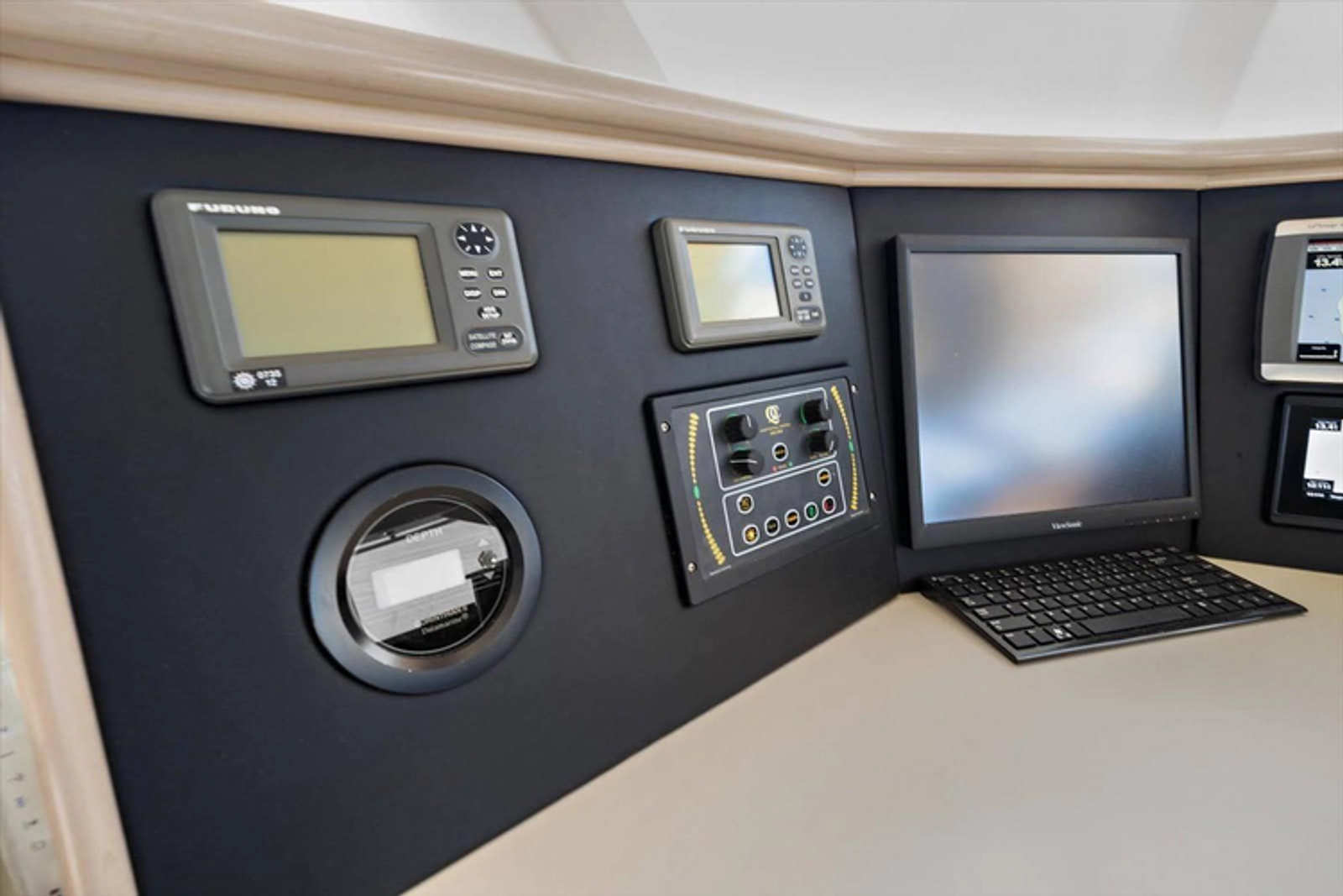 - View Sonic Flat Screen 15andquot; Computer monitor in wheelhouse.