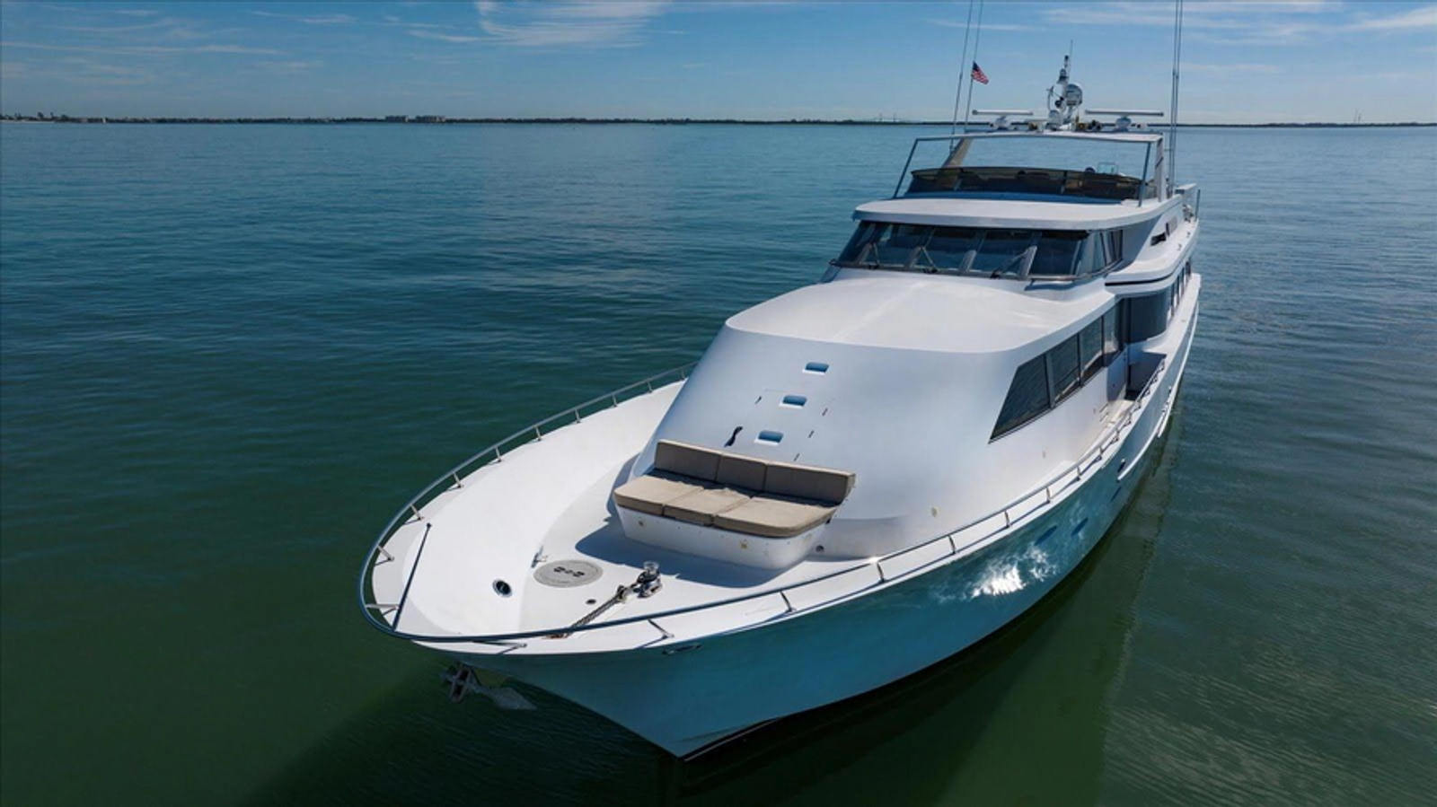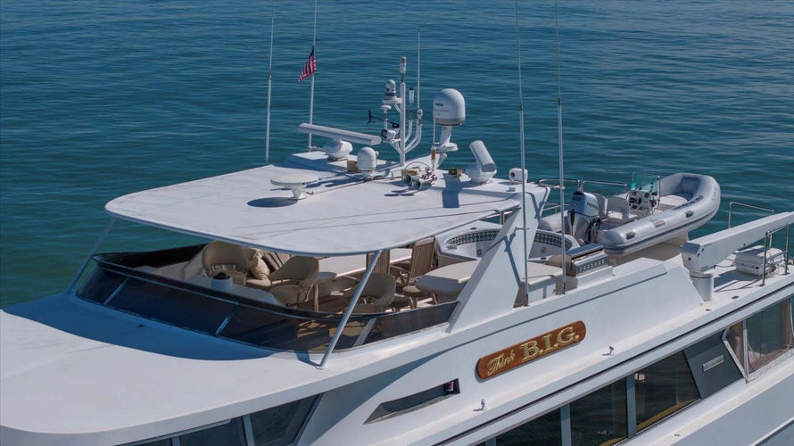 "Think B.I.G" is tastefully decorated in neutral colors throughout her spacious interior, featuring one owner and four separate ensuite guest staterooms along with crew accommodations for four. Featuring a large Country Kitchen & Gourmet Galley with a 8 to 10 person seating dinette. An incredibly large Fly Bridge/Sundeck area with a 6 person Jacuzzi, wet bar, and grill for the ultimate outdoor entertainment experience. "Think B.I.G.", is ready for her next water adventure.