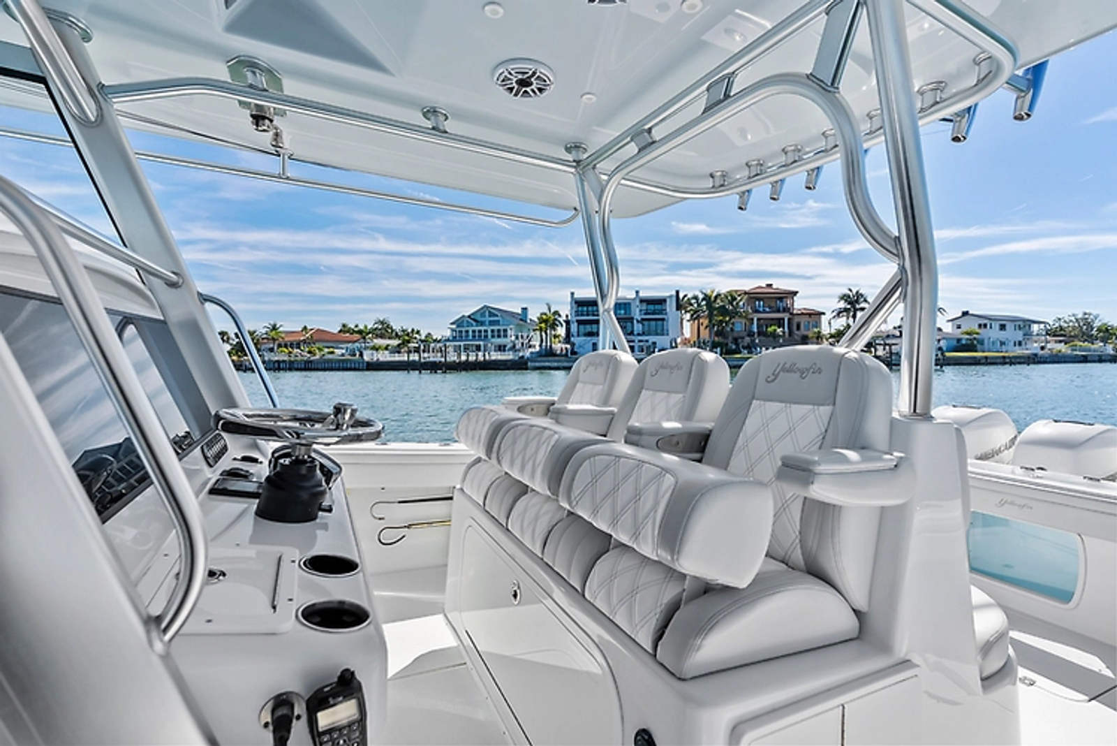 •Deluxe Triple wide Helm Seat with Rear Facing Seat (Diamond Stitching with Embroidered Yellowfin logos)