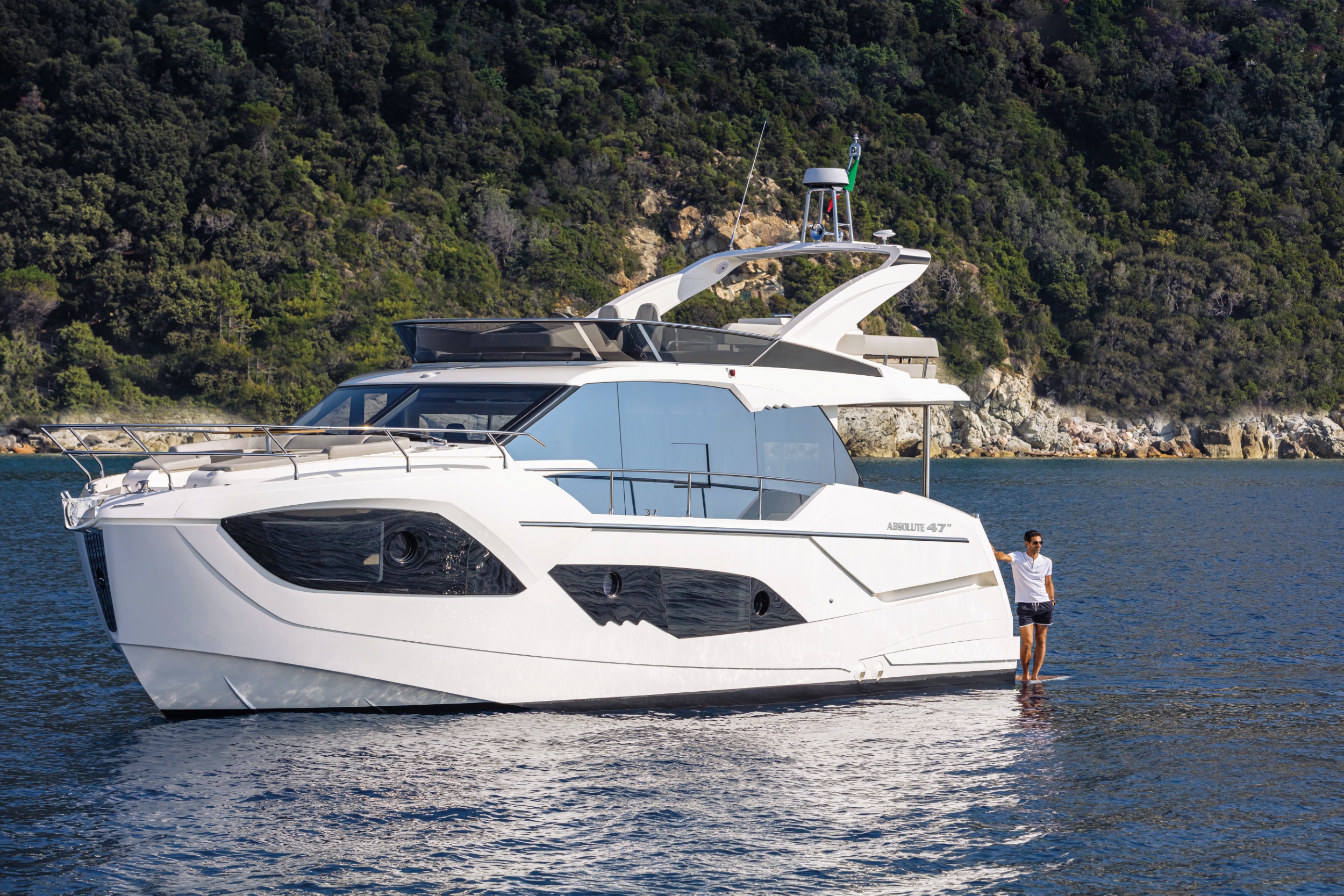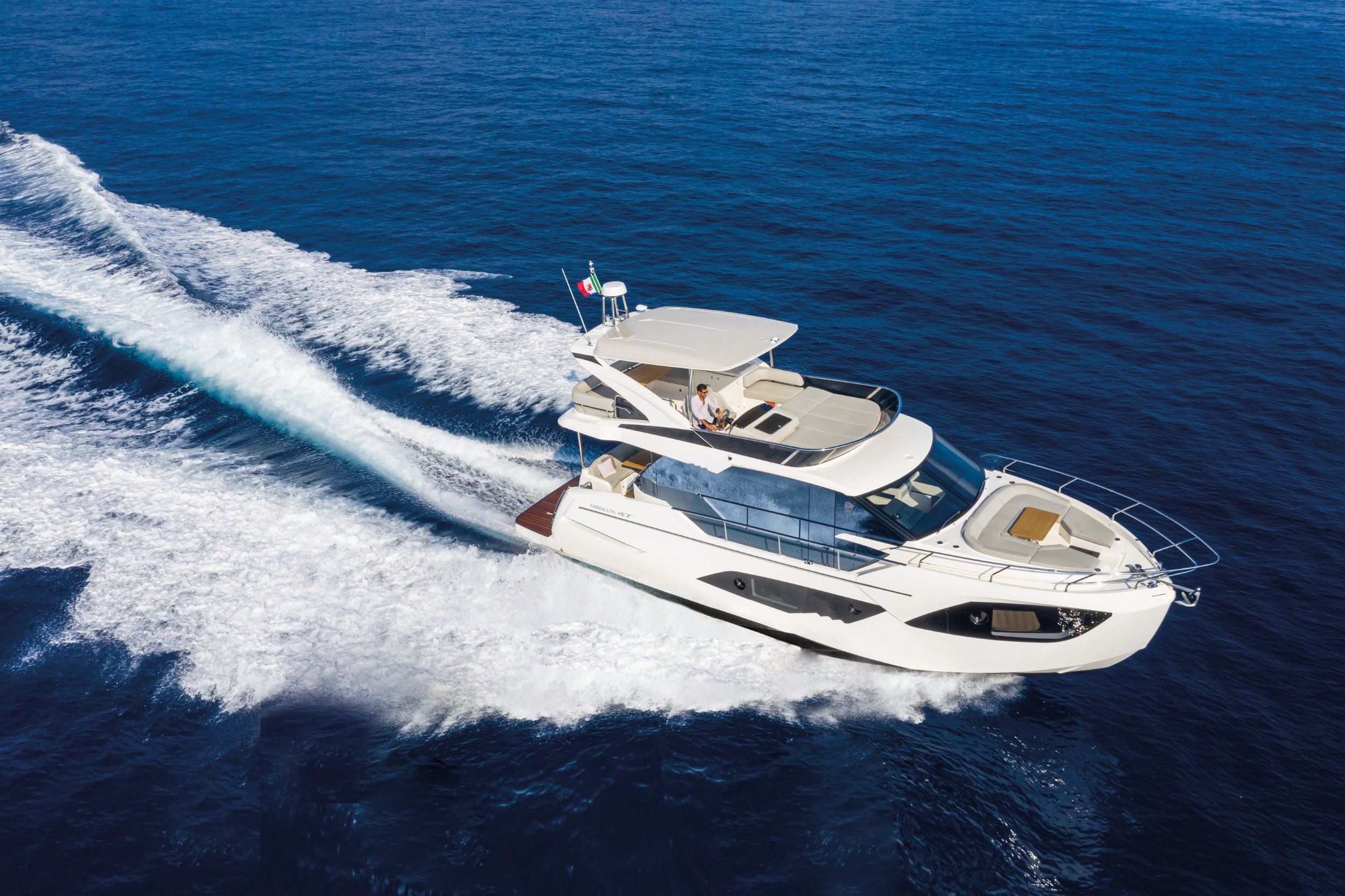 The innovative 47 FLY perfectly embodies Absolute Yachts’ spirit. Her comfortable wide spaces and powerful technology can take you anywhere in total safety, offering an absolute navigation experience.