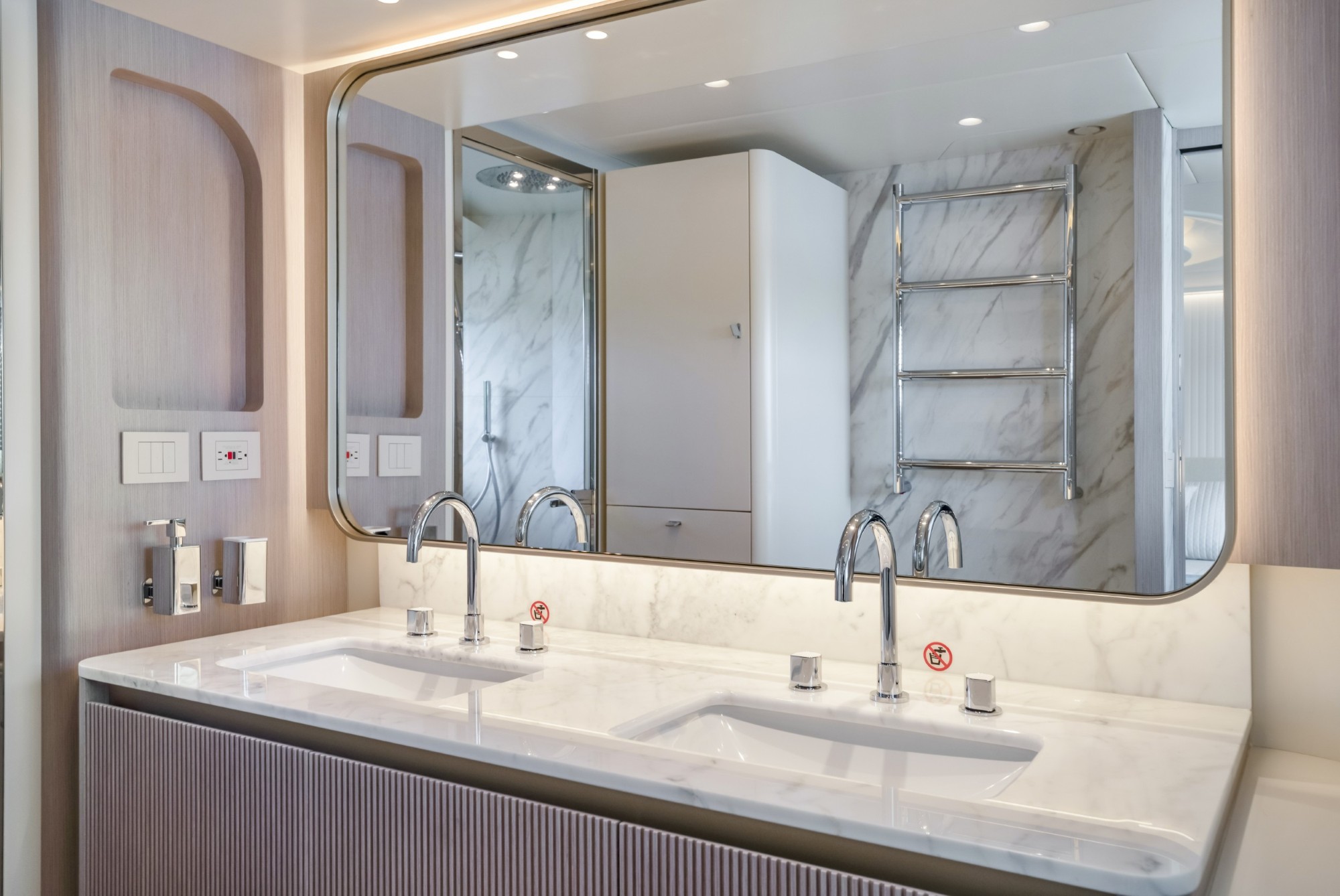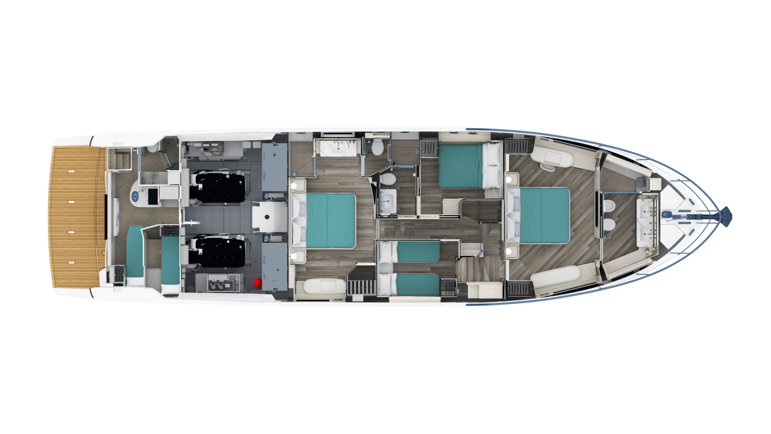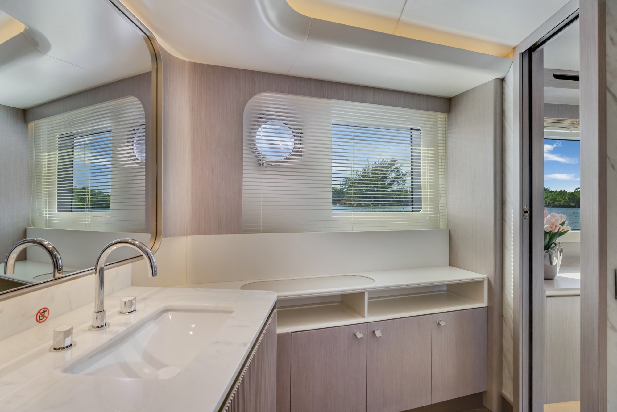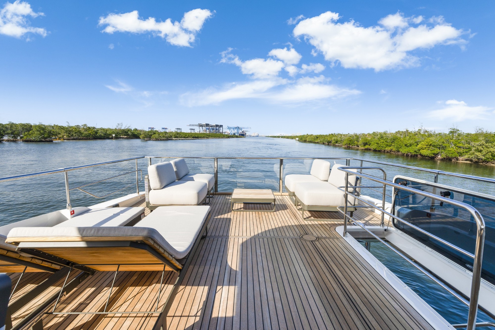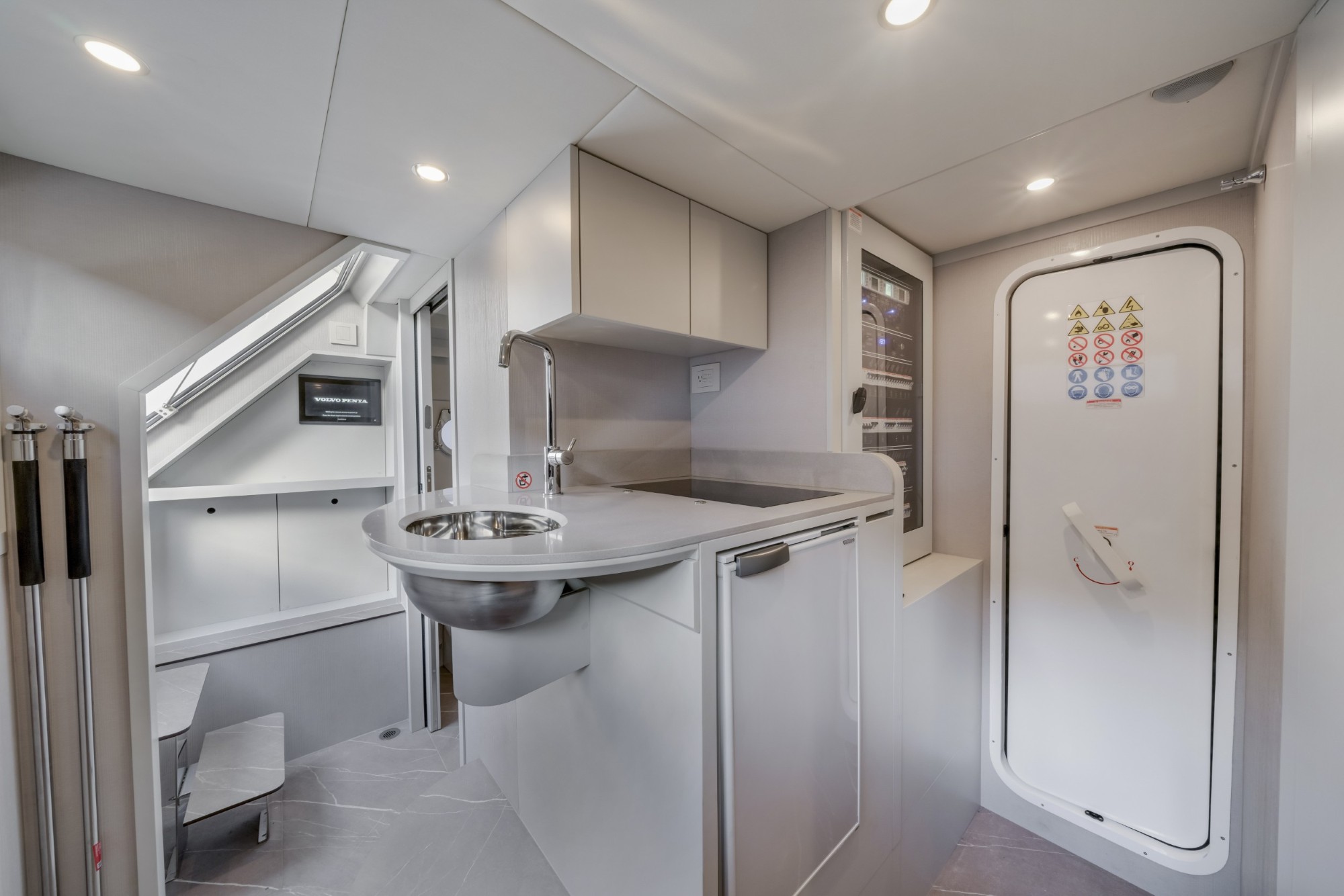 The Navetta 70 is built around expansive glazing and glass railings that create uninterrupted views from nearly every space onboard. This design floods the interior with natural light and enhances the feeling of openness, making the yacht feel significantly larger than its 70-foot length.