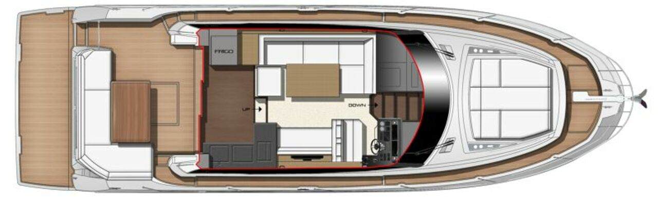 On board, everything has been optimised to offer unequalled space and comfort. Combining the design talents of Garroni Design and JP Concepts, this Flybridge meets all the latest requirements and boasts all the benefits of a true Prestige Yacht.