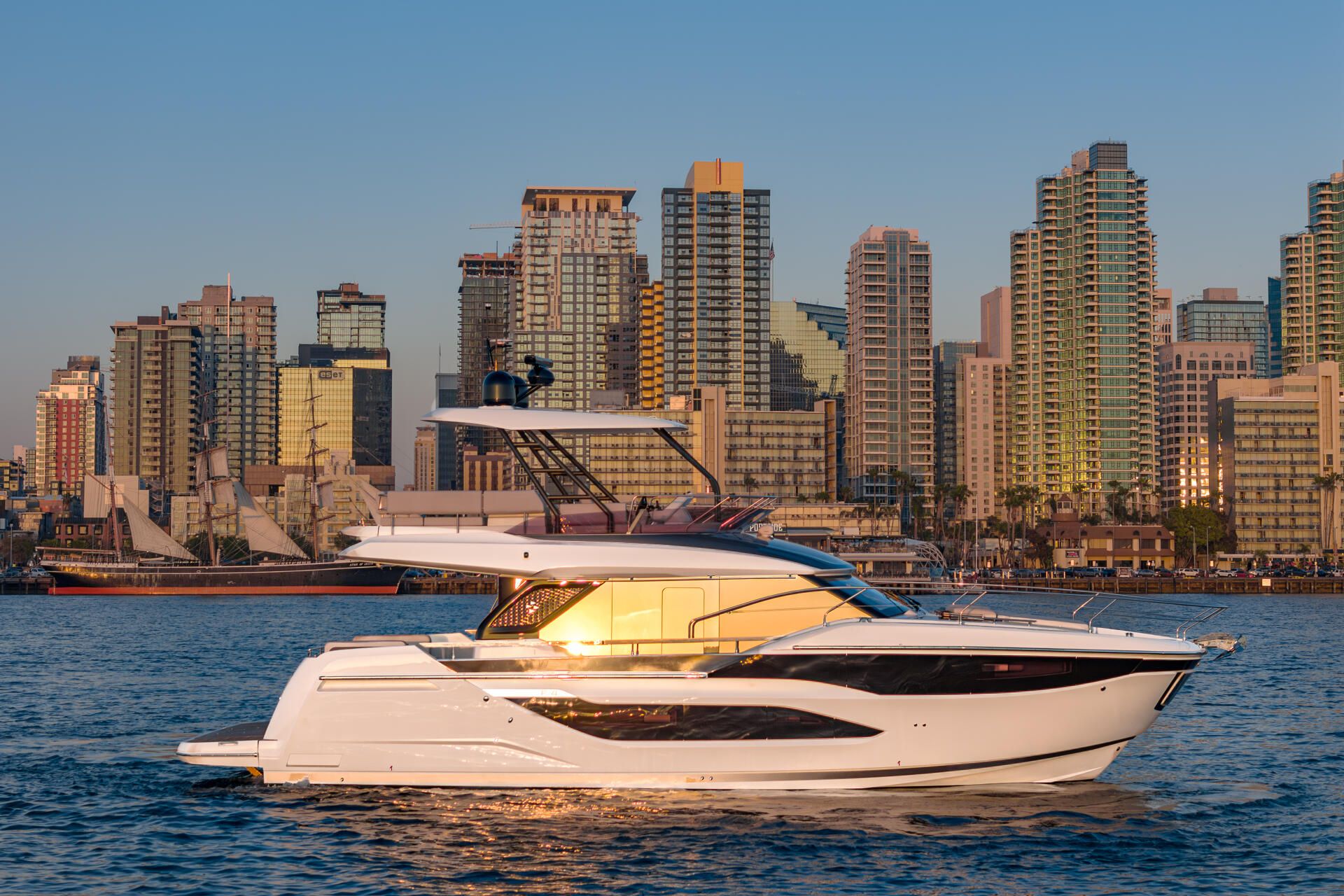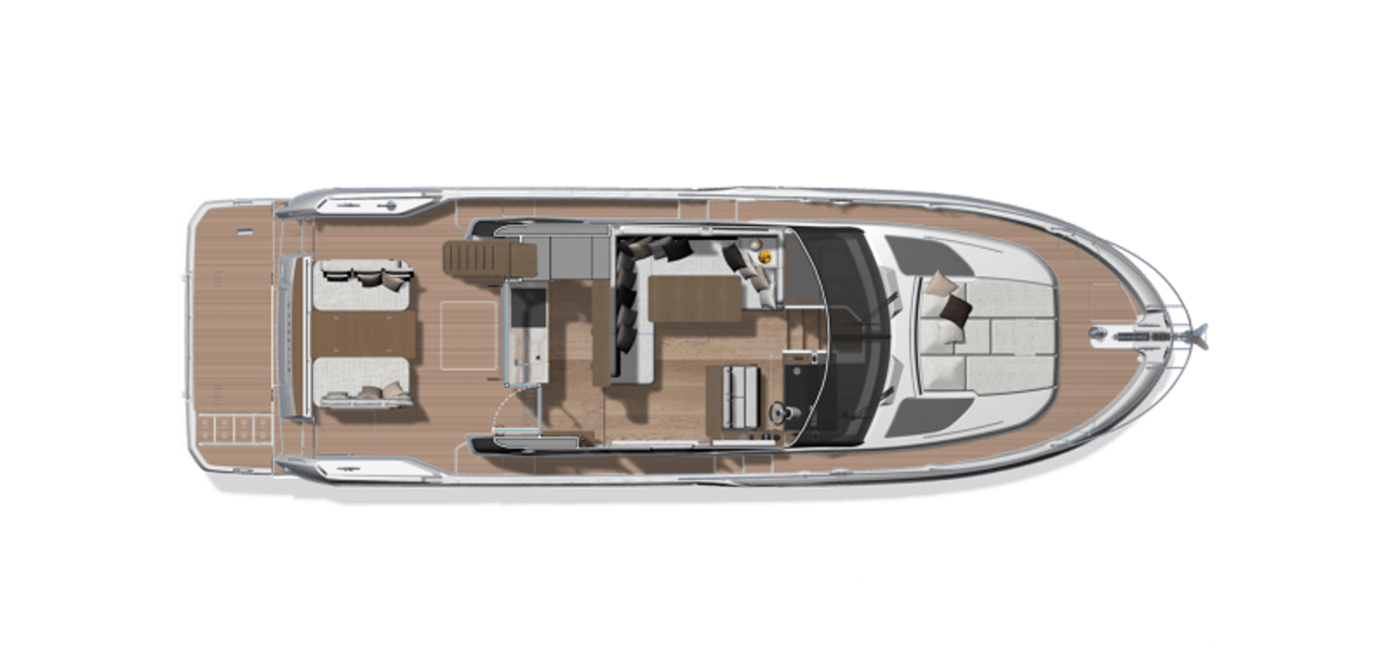 Inspired by the movement of water, the elegant, fluid exterior lines of the new hull of the F4.9 marry perfectly with the polished surfaces of living spaces, reflecting an abundance of natural light. Curves have been meticulously studied to confer softness, refinement, and power to the whole. The exterior and interior furnishings have been reinvented to offer exceptional comfort for all on board.