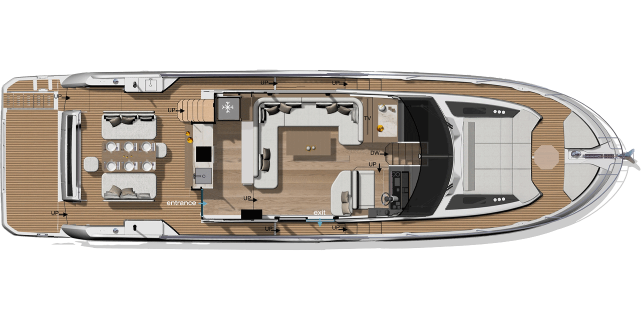 Faithful to the new generation of the F-Line, the F5.7 embraces cutting edge technology, offering owners a cruising experience with unequalled ease of handling.
