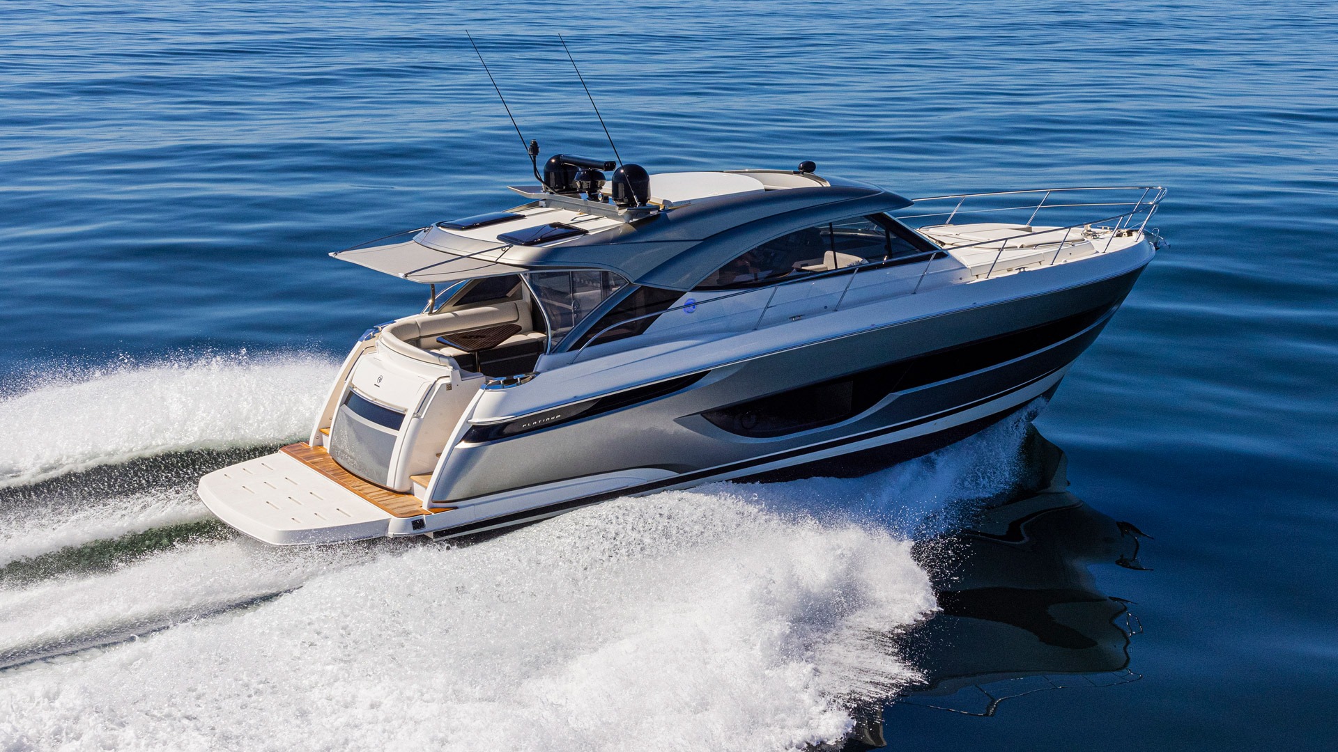 The design philosophy of Riviera’s Sport Yacht collection embodies three imperatives: sleek styling, luxurious single-level living and heritage sea-keeping capabilities. First launched in 2005, these world class motor yachts have gained a loyal following of owners who appreciate the sublime Sport Yacht boating lifestyle. Now the next generation has arrived: the outstanding result of Riviera’s dedication to excellence, innovation and craftsmanship. And being a Platinum Edition, the 4600 Sport Yacht comes with superior appointments and amenity; greater luxury, gleaming colour palettes and aesthetics guaranteed to stand out in any company.