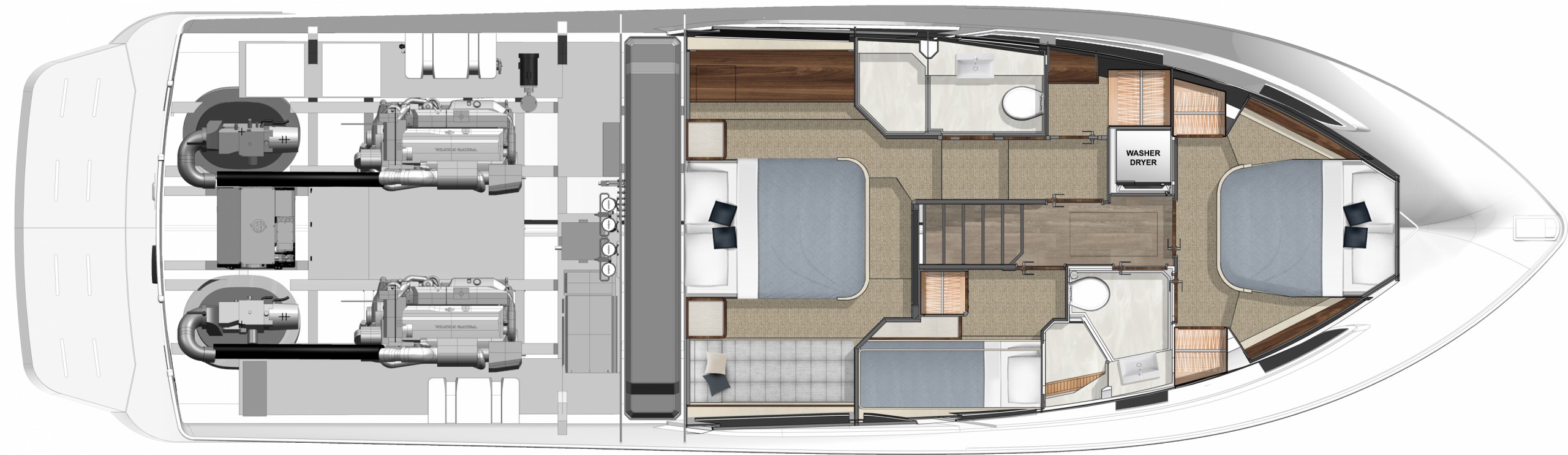 Three-Cabin Layout with Full-Beam Master Comfort