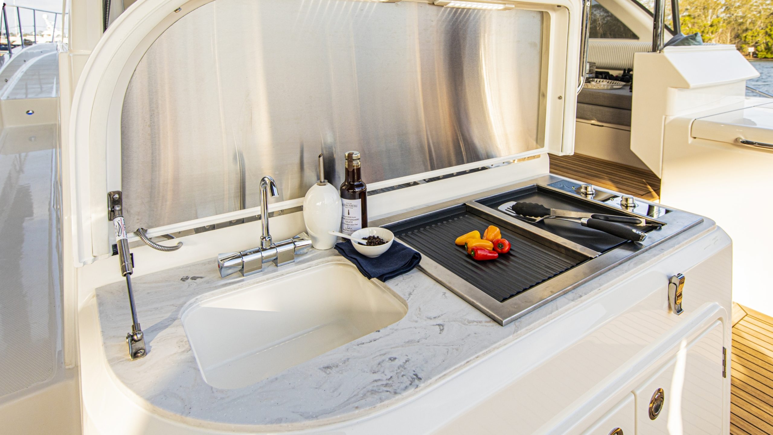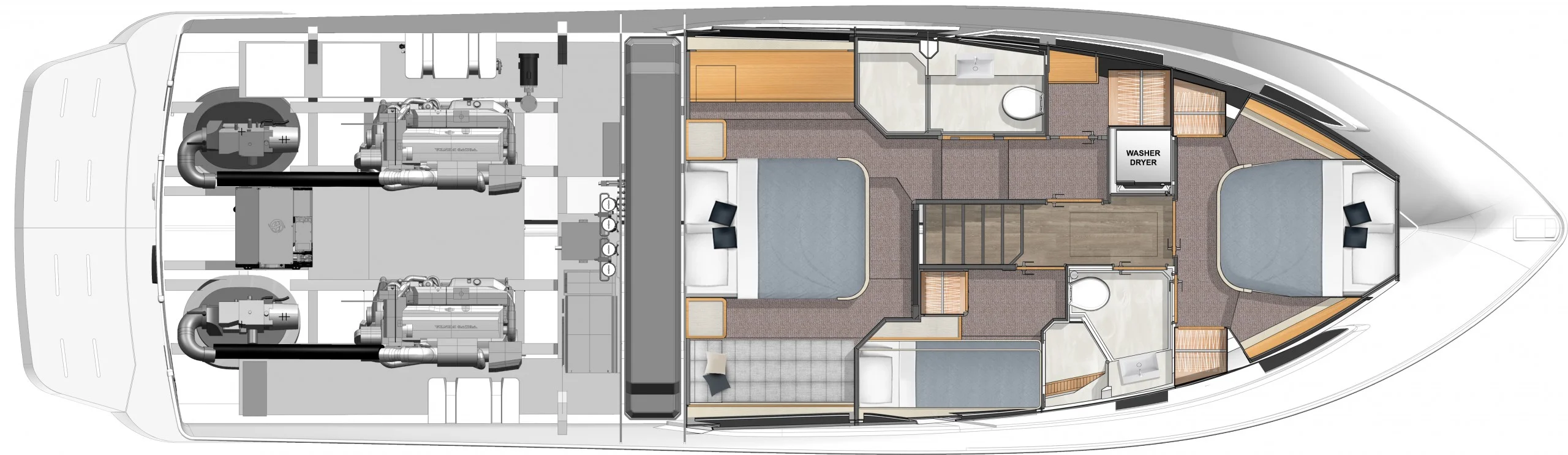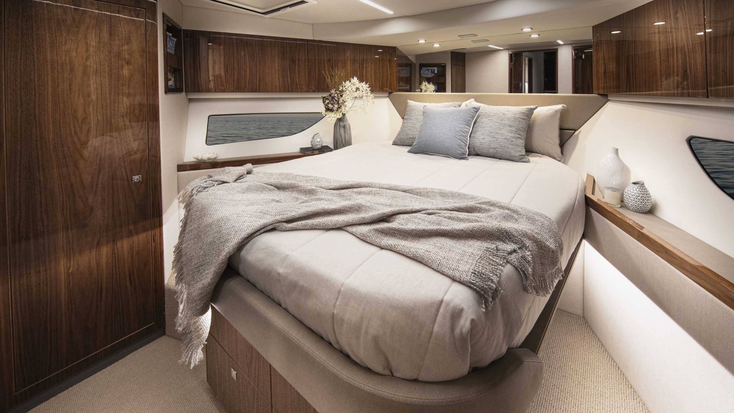 Below deck, the 505 SUV features a spacious full-beam master stateroom complete with a private en-suite and walk-in robe. Combined with two additional guest cabins, it delivers a three-cabin layout with the comfort, space, and practicality needed for extended cruising or hosting family and friends.