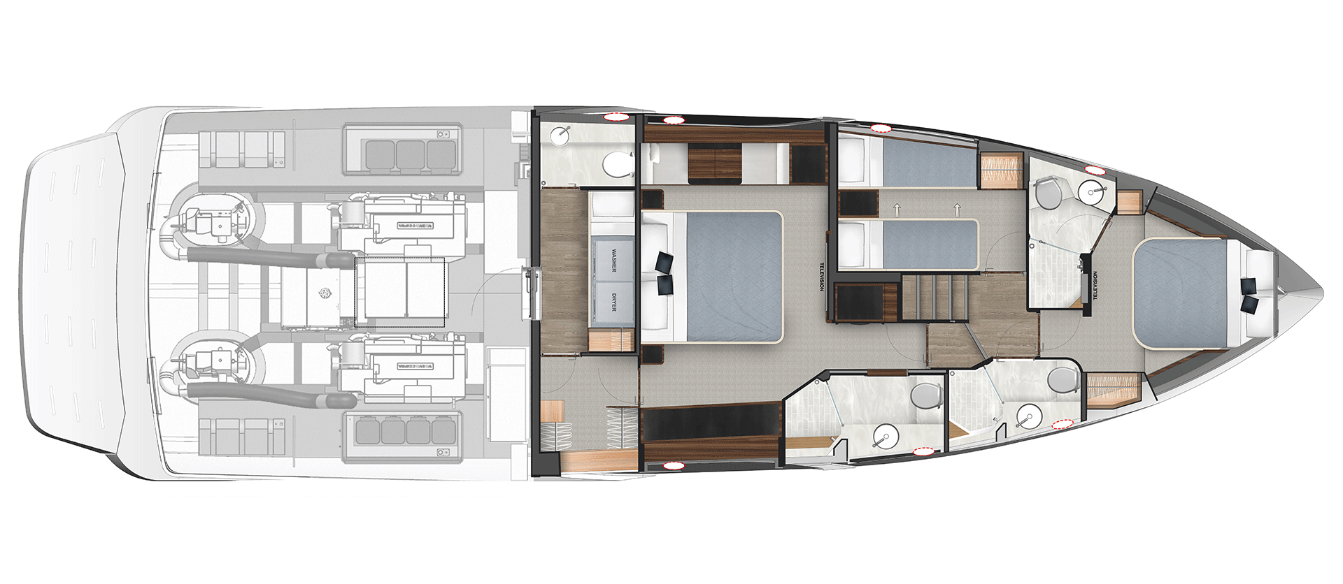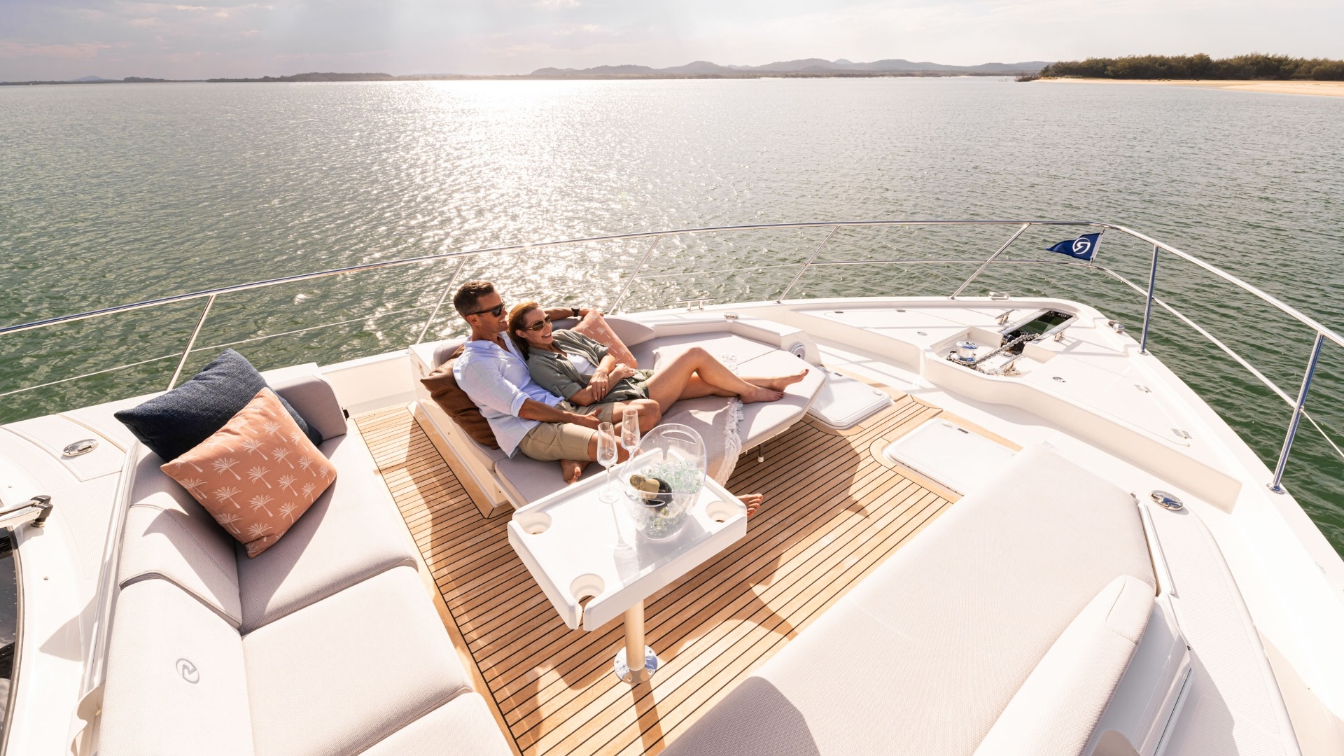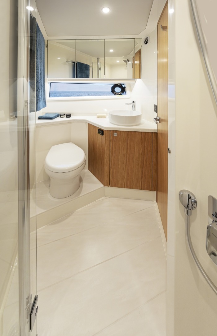 Pamper your family and friends with three luxurious staterooms including a full-beam master, three bathrooms and a crew cabin or utility room with dedicated laundry.