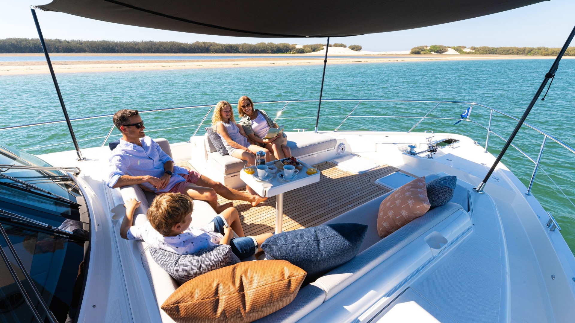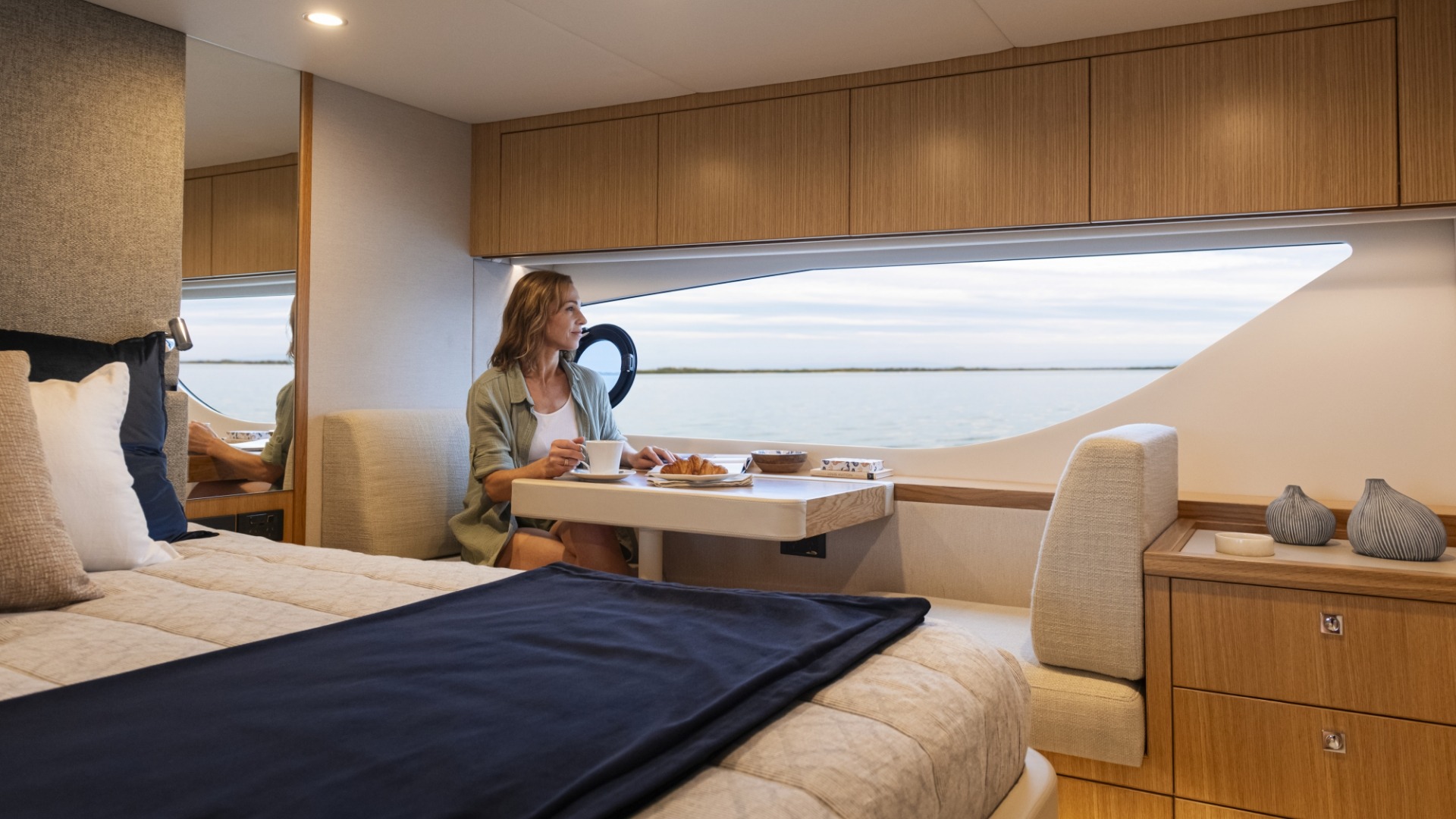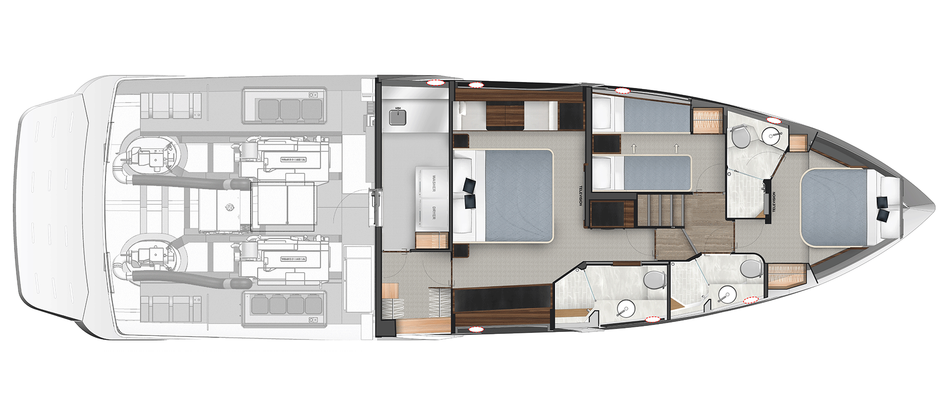 Pamper your family and friends with three luxurious staterooms including a full-beam master, three bathrooms and a crew cabin or utility room with dedicated laundry.