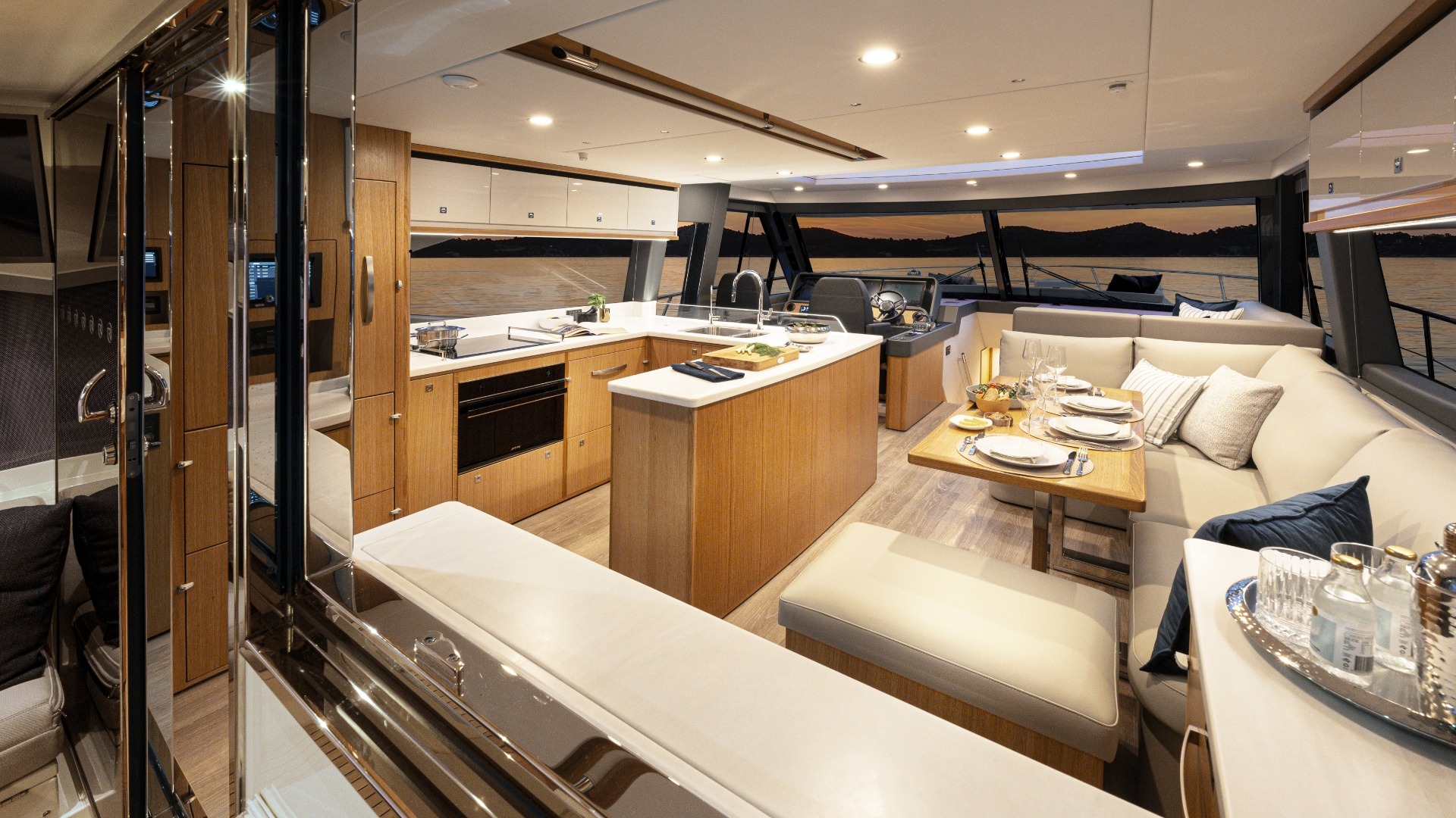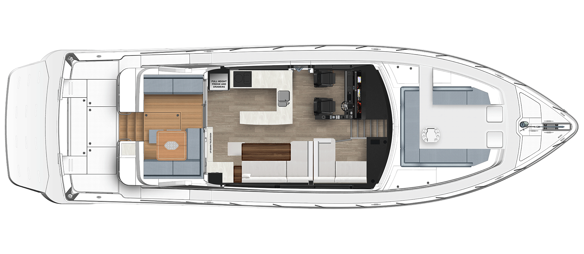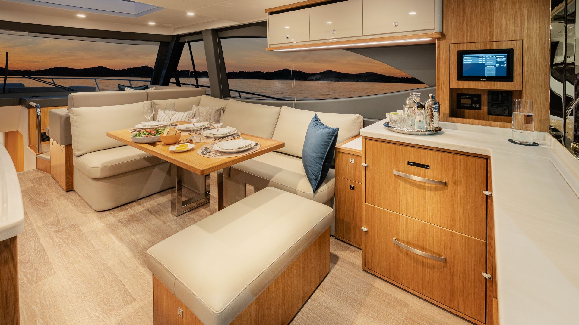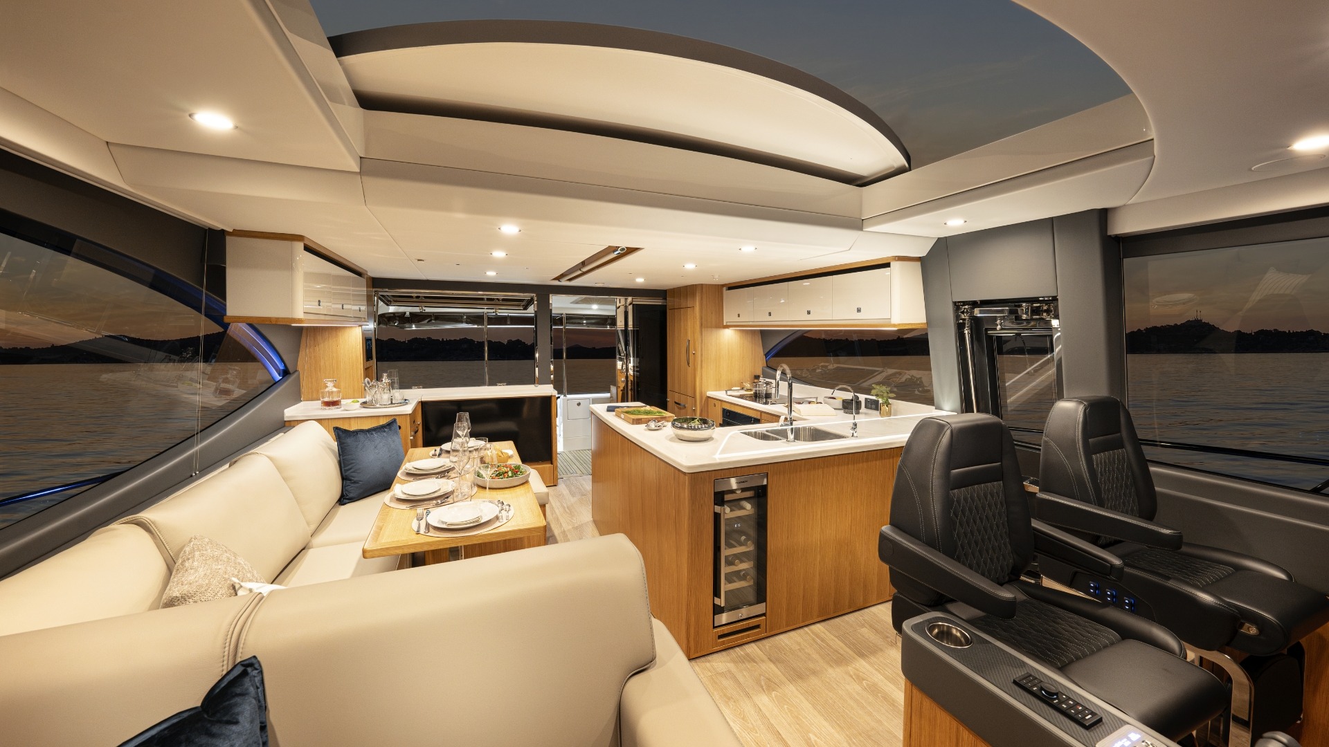 Experience new levels of luxury living, entertaining and relaxing all with that signature SUV spirit of adventure, proven blue water performance and water sports action. Enjoy two superb dining options – on the alfresco deck and in the spacious saloon – as well as a third U-shaped, 8-seat entertaining area on the foredeck.