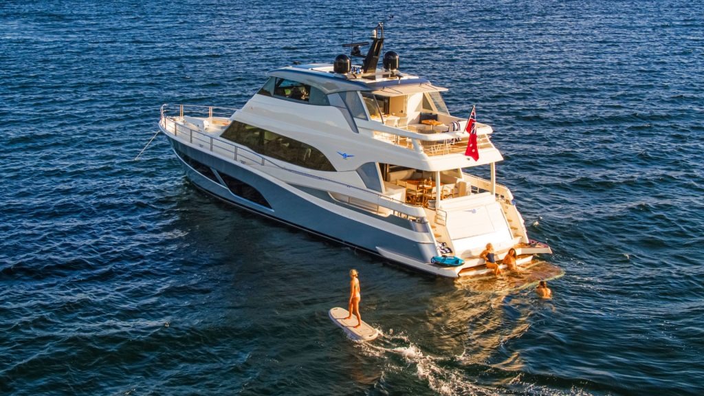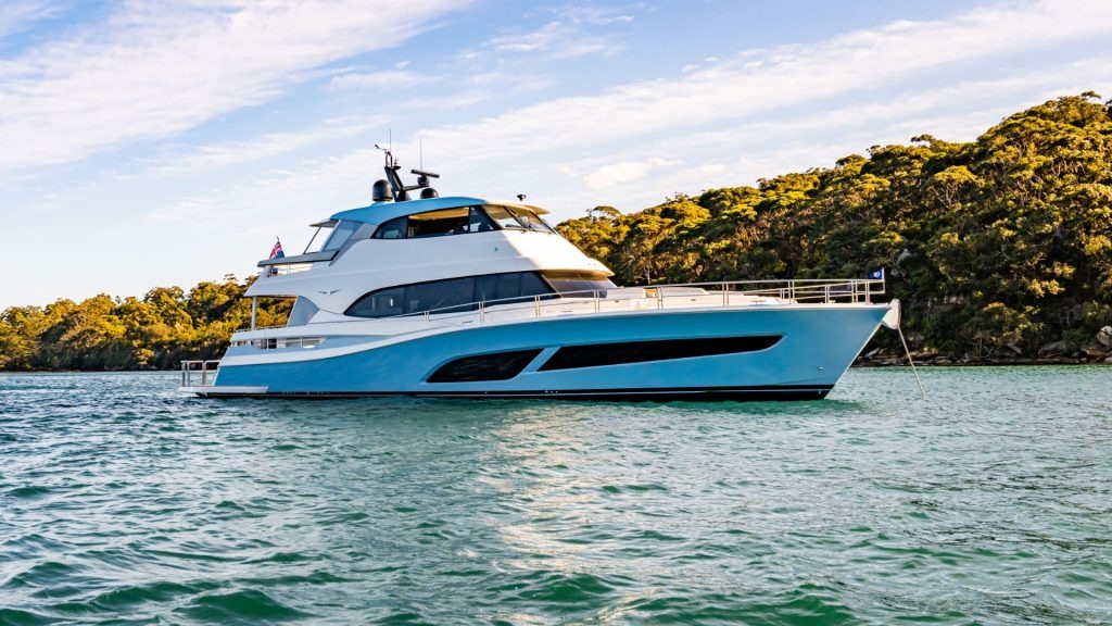The award-winning Riviera design group in collaboration with superyacht designer, Luca Vallebona, have created the 78 Motor Yacht, an entirely new Riviera. With more space and more luxury as well as the key attributes of Riviera: quality, strength and blue-water performance. Hence, the Riviera 78 is an ocean capable luxury motor yacht, equally comfortable entertaining of Sydney Harbour, cruising the Mediterranean, or relaxing with family on holiday in the Bahamas.