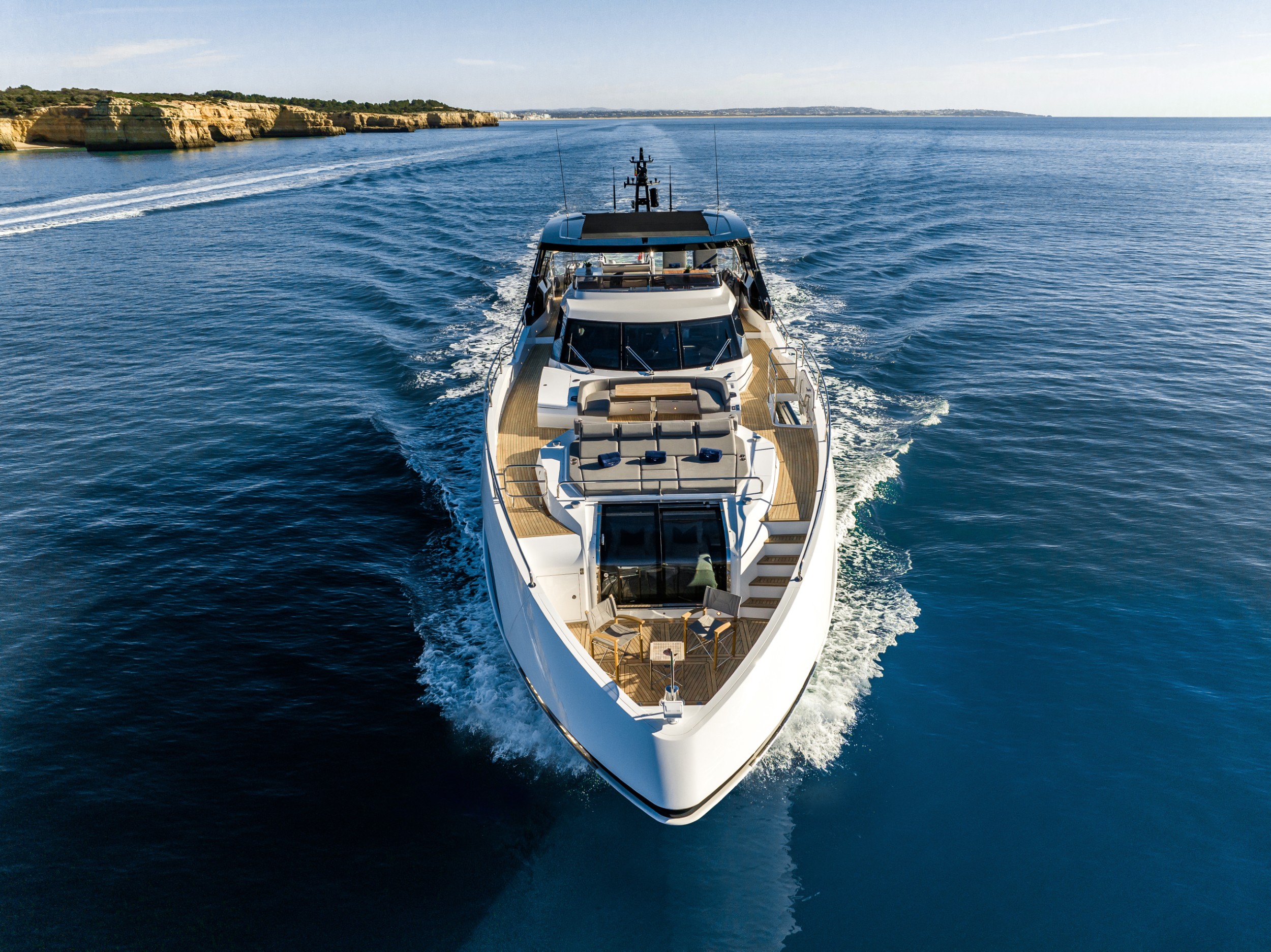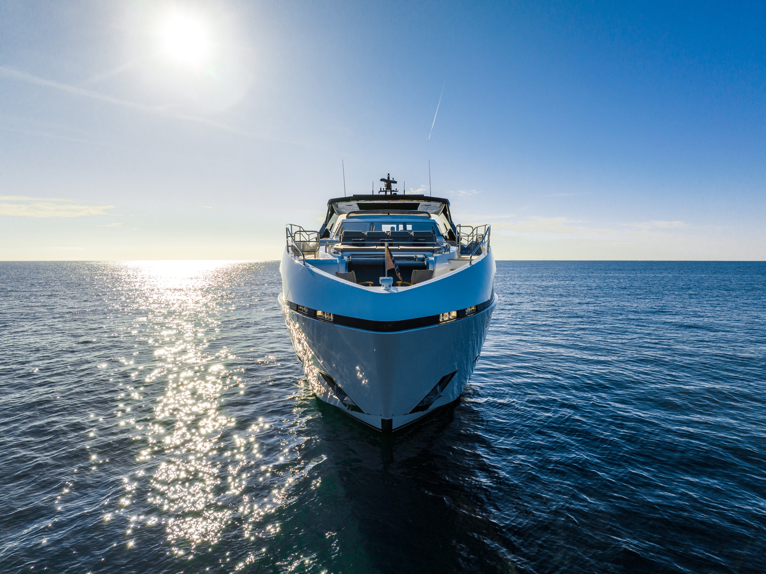 A striking Master Stateroom forward with a private bow terrace, sunbathing hideaways, a breathtaking single-level exterior deck from flybridge to foredeck, a beautifully proportioned open-plan interior and generous ‘Beach Club’, just a few of her magnificent features.