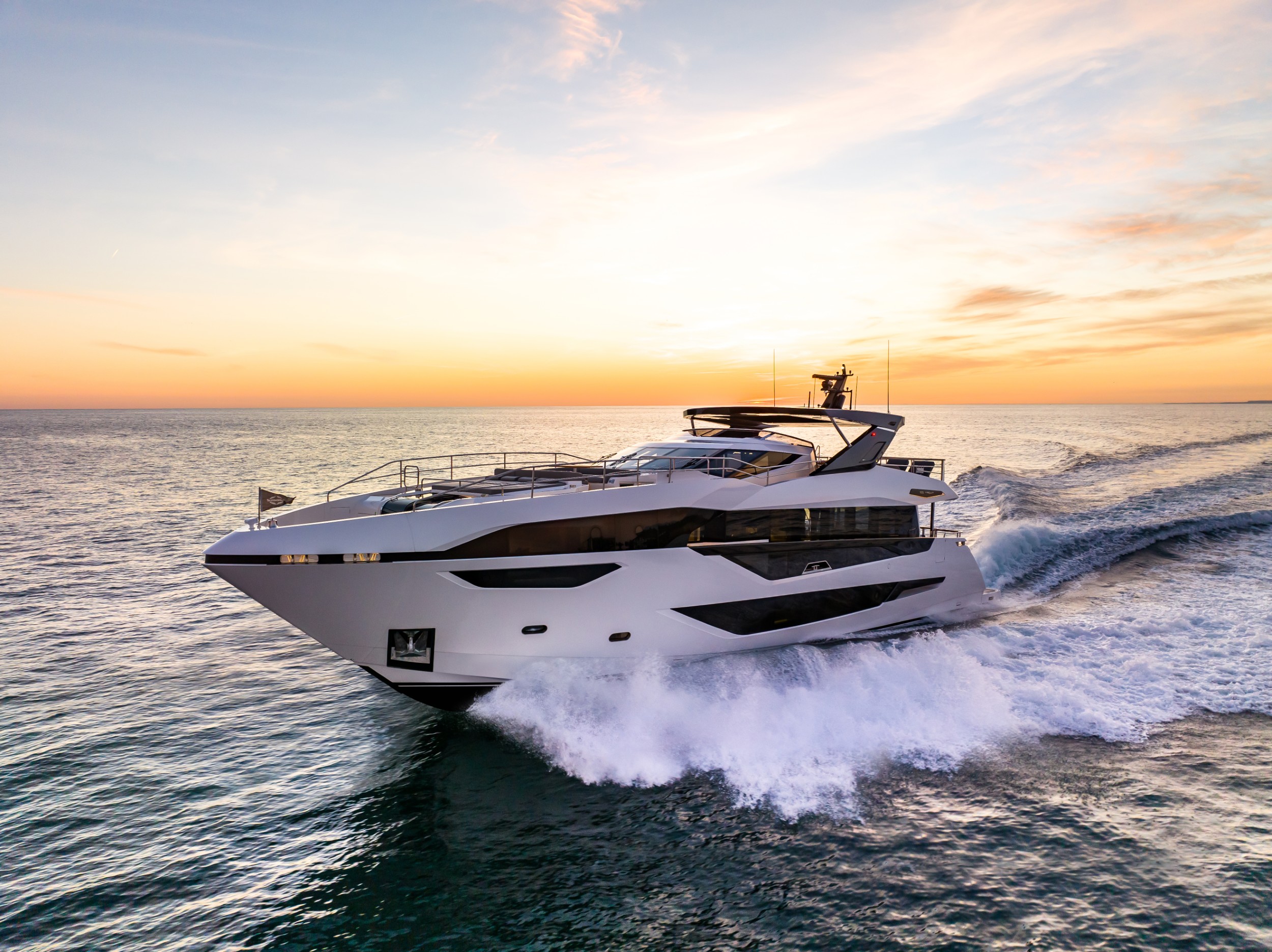 The Sunseeker 100 Yacht, is the epitome of a luxury yacht. Powered by MTU 12V 2000 M96X as standard or MTU 16V 2000 M96L engines as an option, the 100 Yacht accommodates up to twelve guests and five crew in complete luxury, reaching speeds of up to 30 knots.