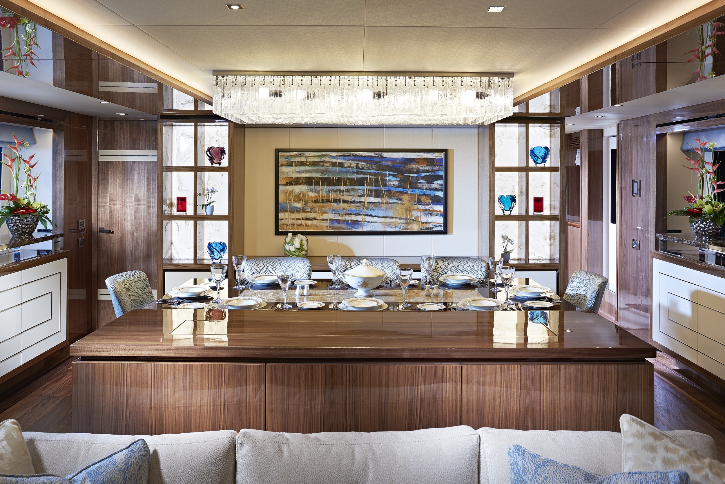 Built for serious cruising, the 131 Yacht offers a range of approximately 1,500 to 1,600 nautical miles at efficient speeds. Twin MTU engines provide smooth, reliable performance, while large fuel capacity and advanced stabilization systems ensure comfort whether underway or at anchor.