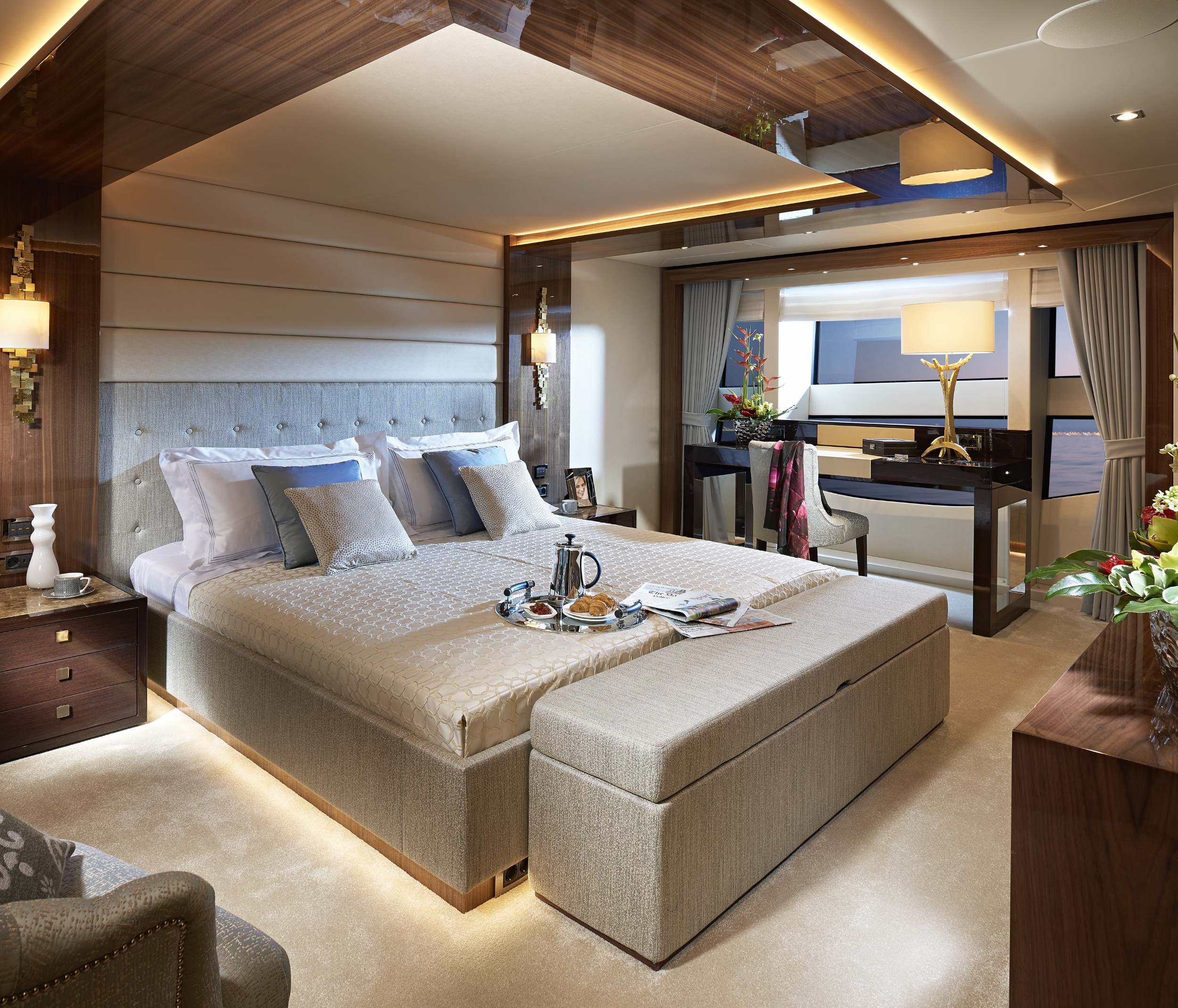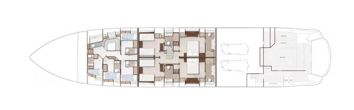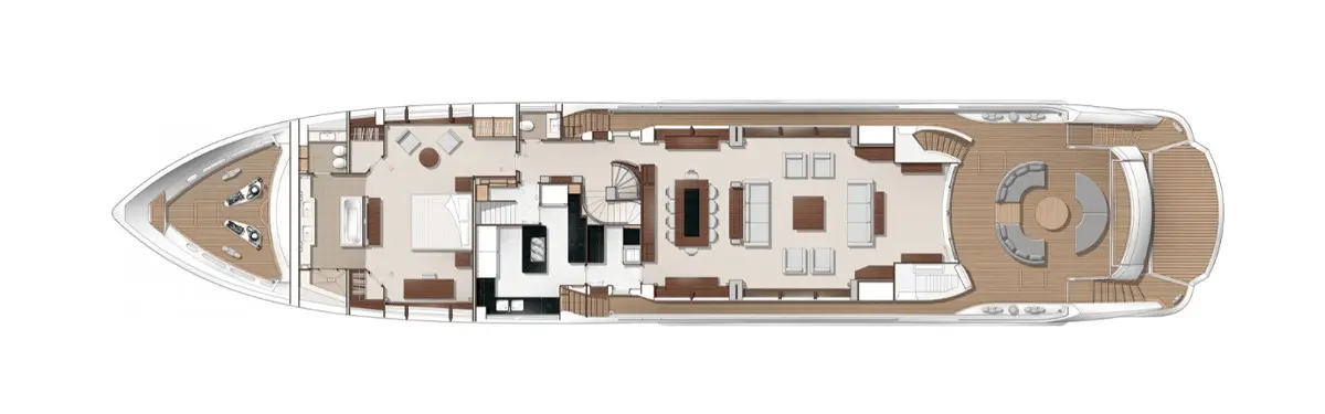 At over 131 feet in length with a beam exceeding 26 feet, the Sunseeker 131 delivers massive interior volume across three full decks. Designed to accommodate up to 10 guests in five luxurious cabins, it offers the space, flow, and separation typically found in much larger superyachts, making it ideal for both private ownership and charter use.