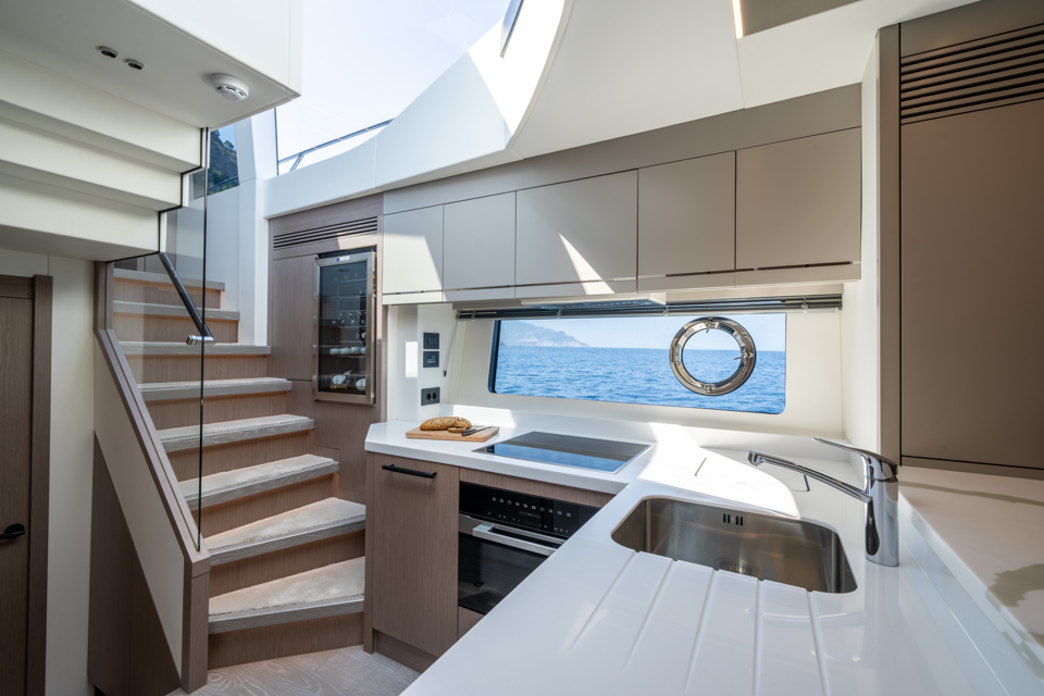 The lower deck arrangement offers spacious accommodation for up to eight guests and two crew. A sumptuous full-beam master cabin has a dressing table fitted with storage, a chaise longue and plenty of additional wardrobe space. All three guest suites come with an en suite, and access to a shared day head is available from the lower hallway. The fully-fitted lower galley and dining space offer a social zone for intimate entertaining. With so much choice on offer, buyers can tailor their 75 Sport Yacht to fit their lifestyle perfectly. Given the breadth of entertainment spaces on offer, spacious cabins and powerful sea-keeping, the 75 Sport Yacht promises to deliver an exceptional owner experience.