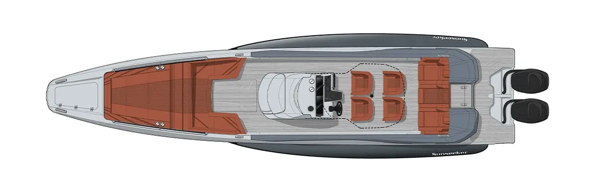 Its searing performance will ensure an exhilarating ride. Together with Fabio Buzzi Design, winner of 43 World Speed records and 55 World Championships, Sunseeker developed an exciting stepped hull for this model. Whilst the incredible design, features, and equipment delivers ultimate day-boat appeal, a choice of paint finishes and upholstery makes the Hawk 38 the perfect day boat and/or superyacht chase boat. The optimised hull takes advantage of the latest outboard engine technology giving not only performance benefits but also low-cost maintenance. Sunseeker have always dominated the performance yacht space and will continue to do so with this cutting-edge model.