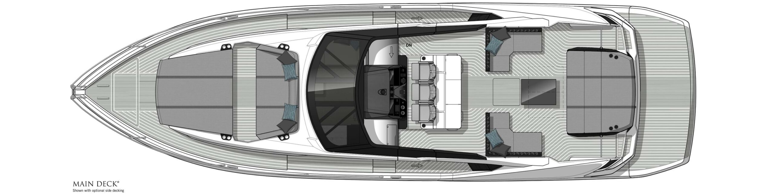 Designed as the ultimate open-top day boat, the Superhawk 55 features a full-beam cockpit, expansive sunpads, and a versatile social layout centered around a sleek wet bar. Seamless walkaround access and flexible seating create the perfect environment for entertaining, from relaxed lake days to high-energy coastal cruising.